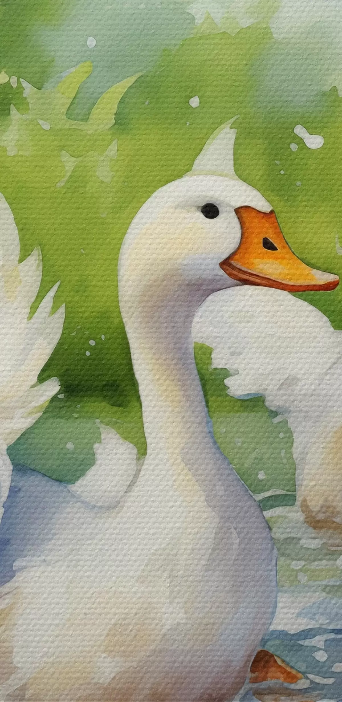 Ronde schilderijen Witte ganzen badend in een vijver aquarel schilderij Nr r39939