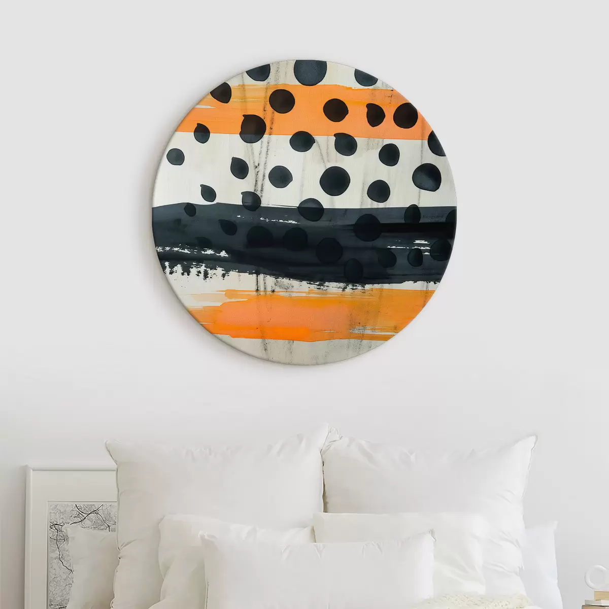 Ronde schilderijen Abstractie, zwart, oranje, cirkel Nr r39947