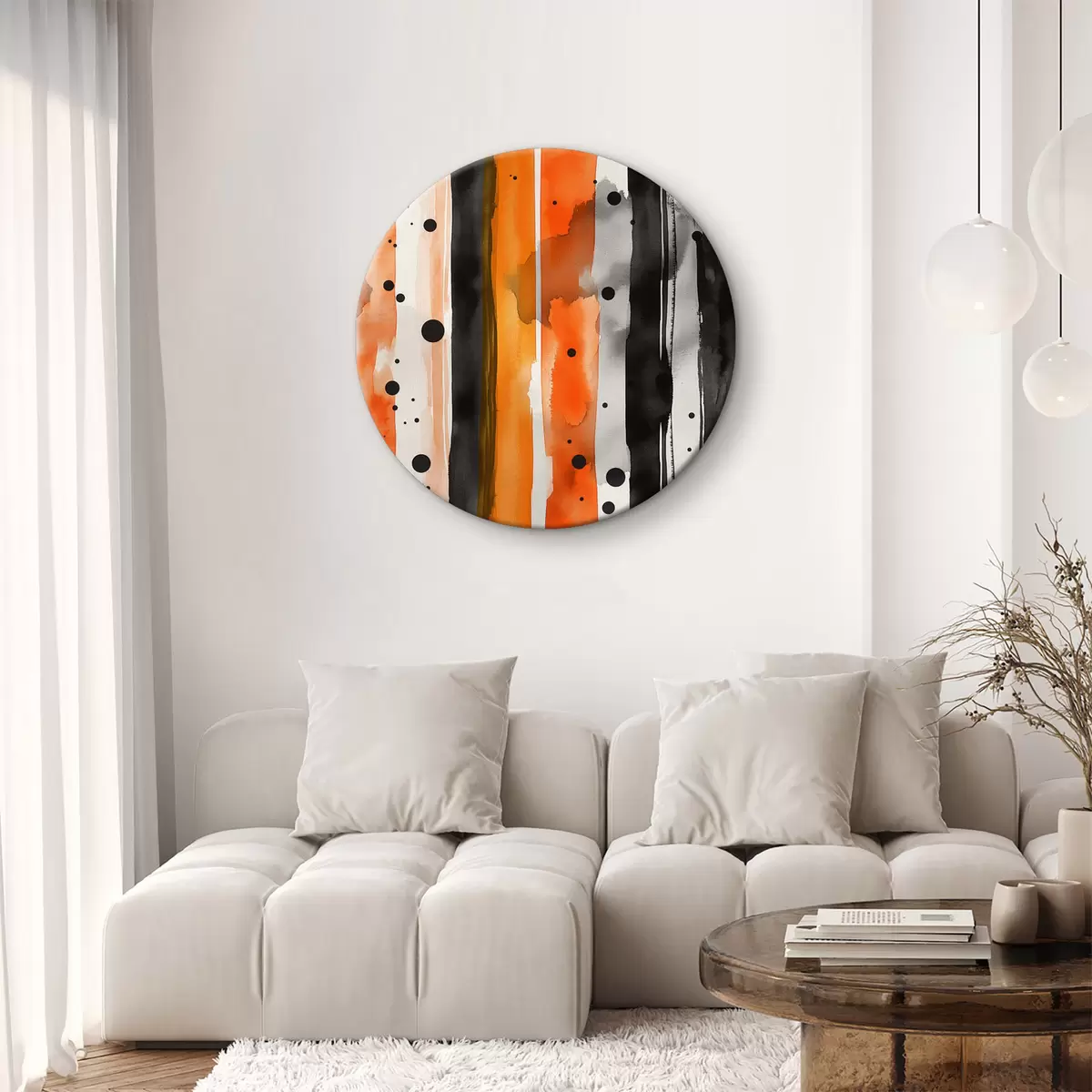 Ronde schilderijen Strepen, aquarel, zwart, oranje r39948