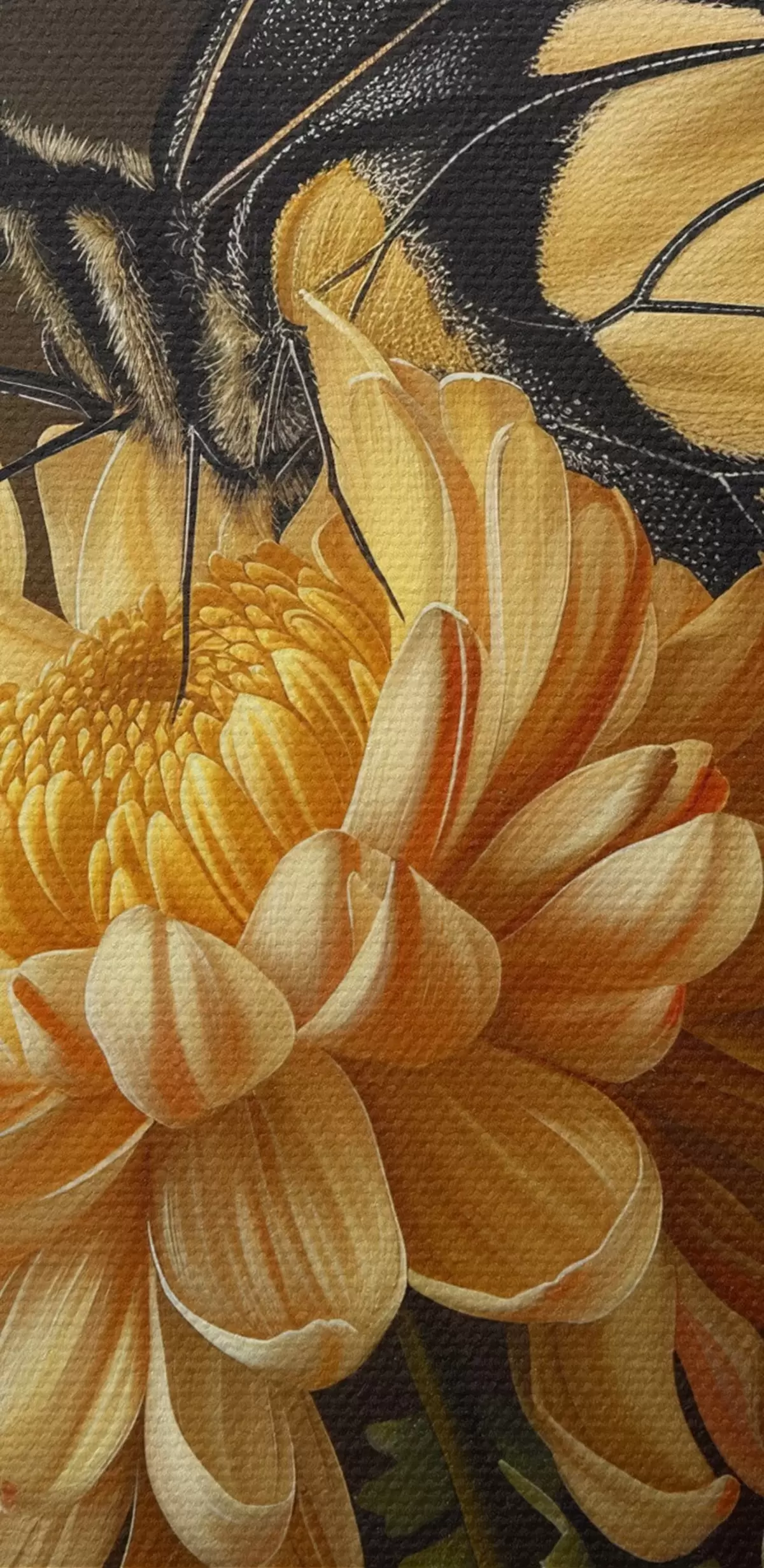 Ronde schilderijen Vlinder, boeket, bloemen, tulp, chrysant Nr r39949