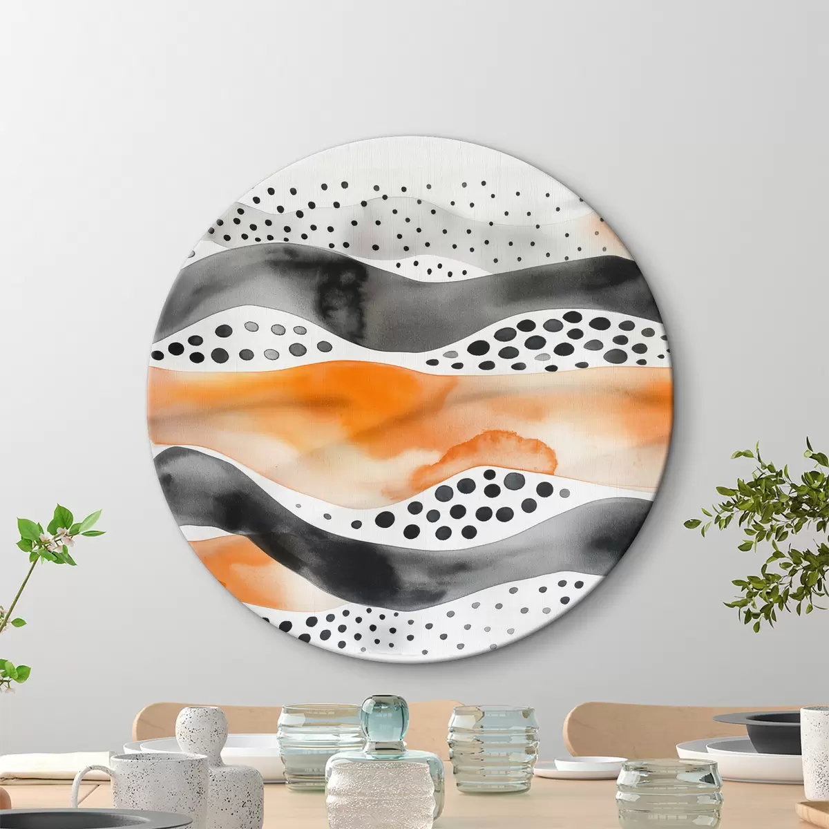 Ronde schilderijen Golven, stippen, zwart, oranje Nr r39950