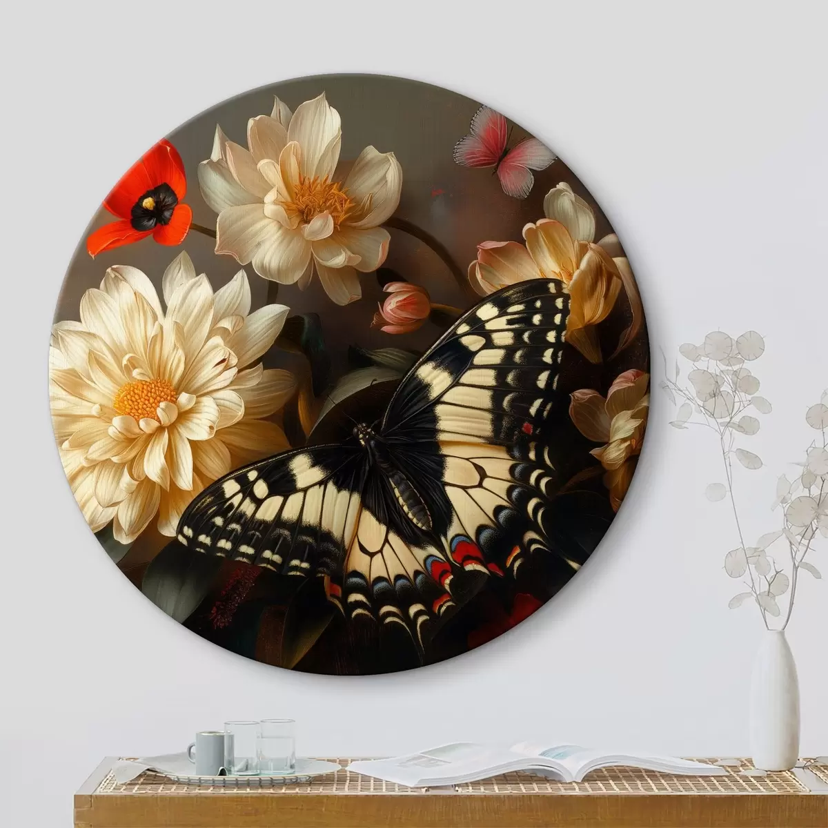 Ronde schilderijen Chrysanten, boeket, bloemen, tulp, vlinder r39951