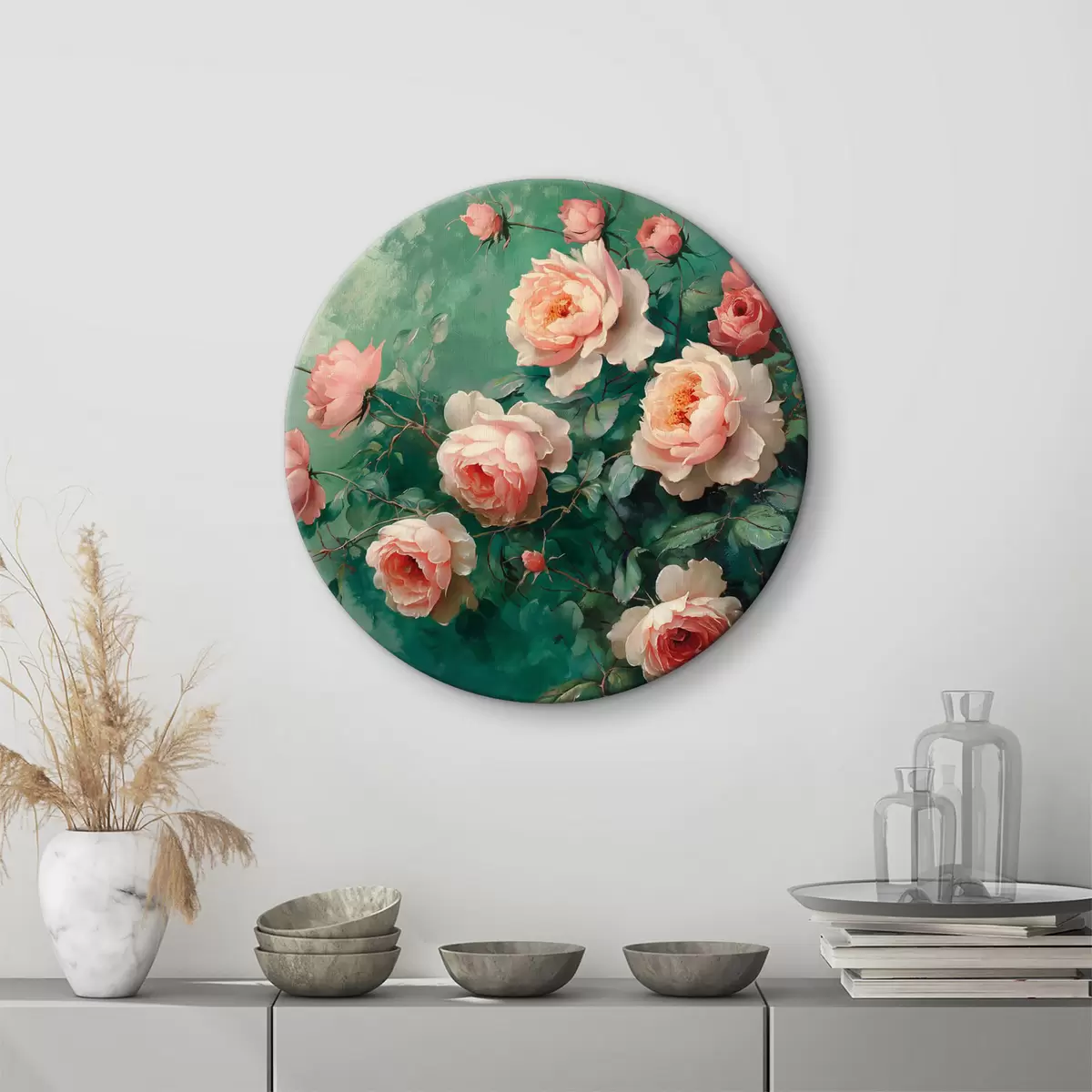 Ronde schilderijen Witte rozen, acryl Nr r39956