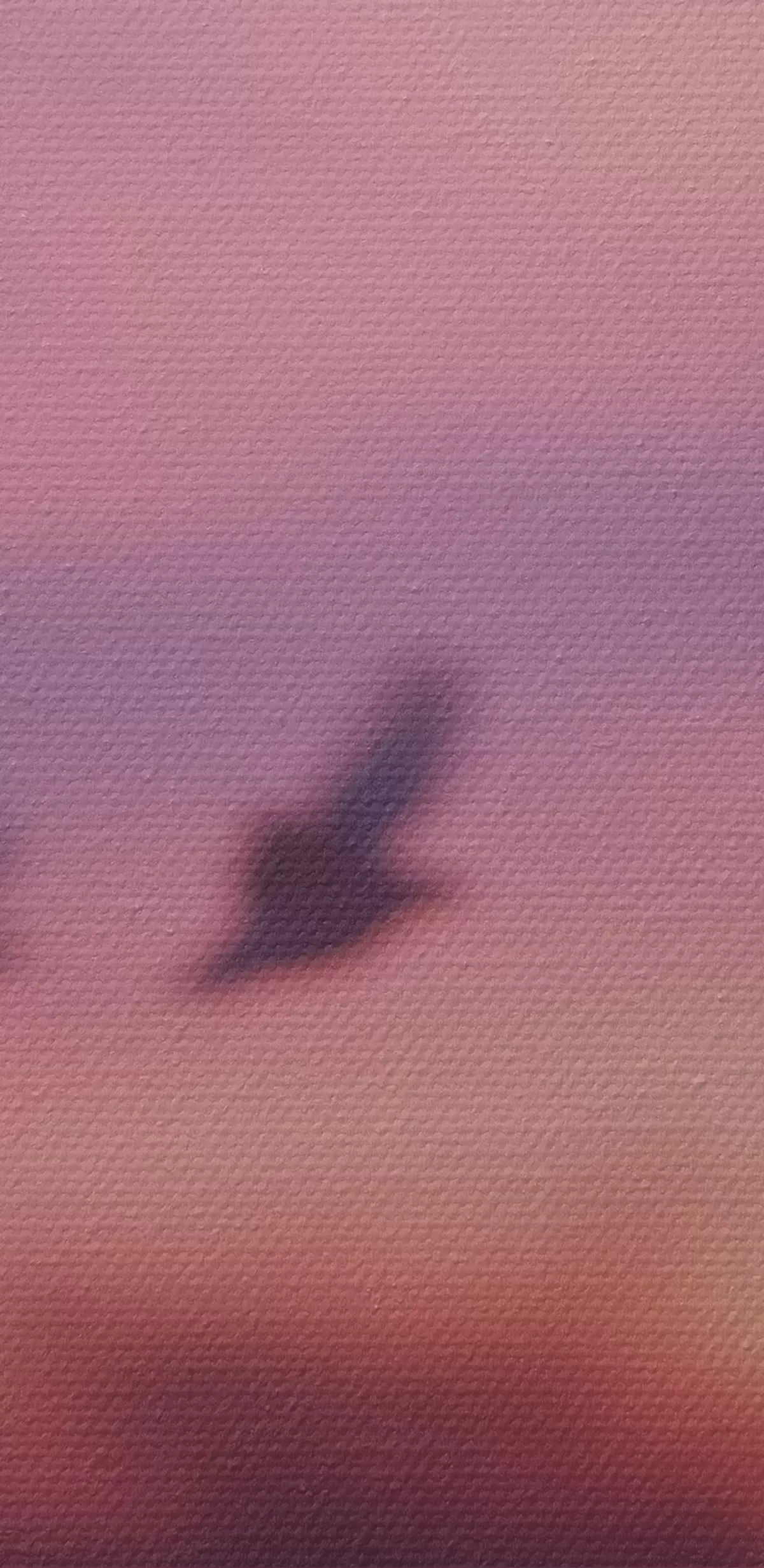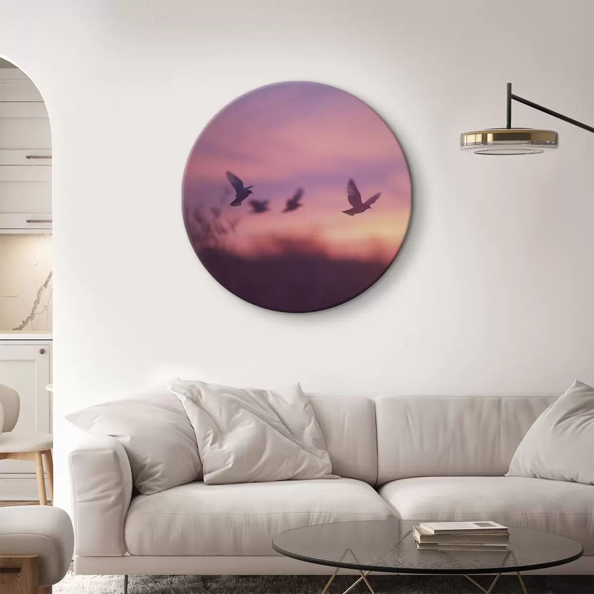 Ronde schilderijen Vliegende vogels, paarse zonsondergang, natuurlandschap, filmisch r39972