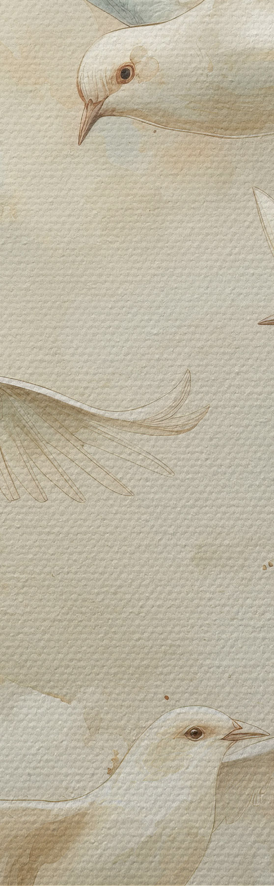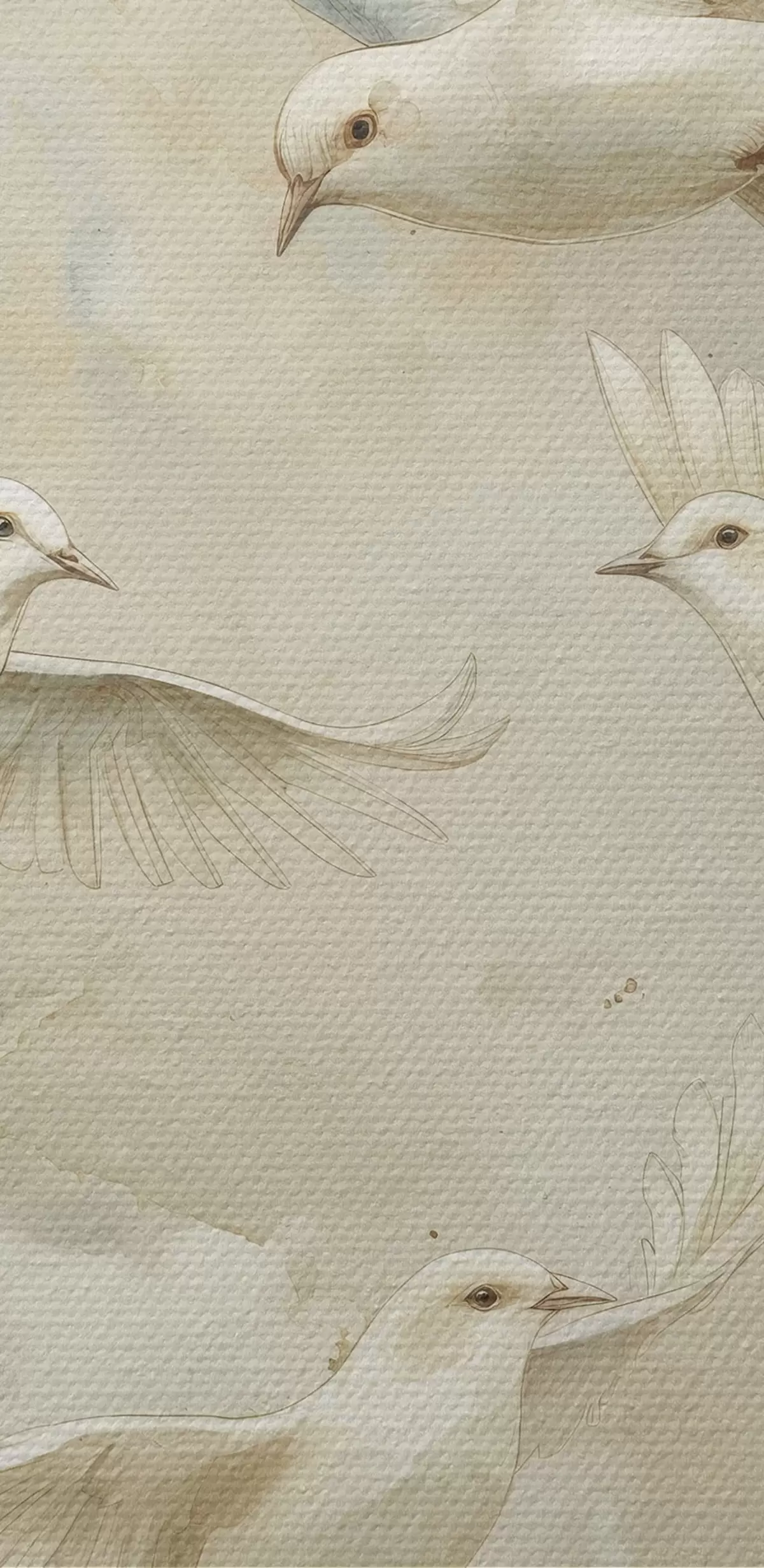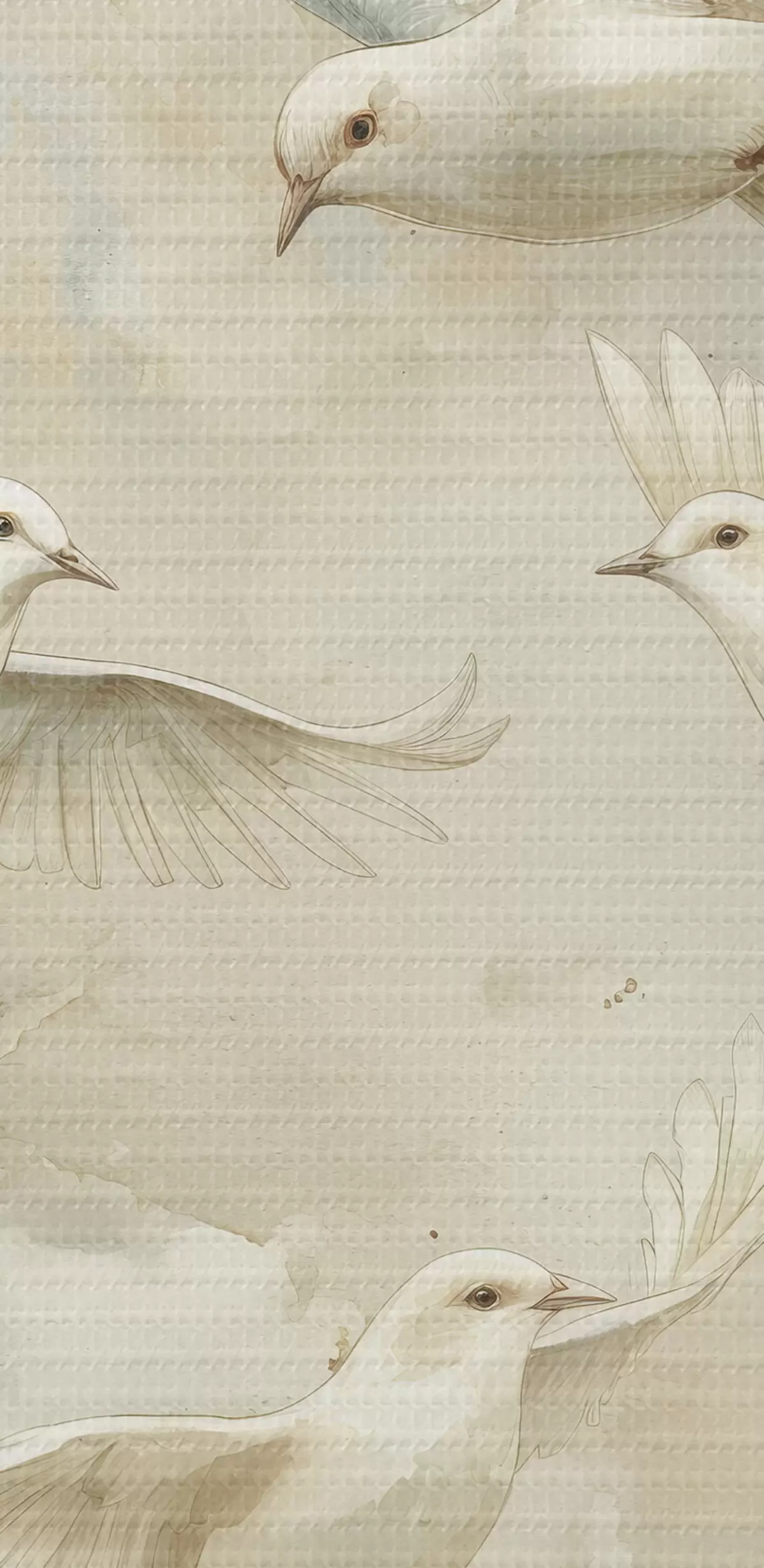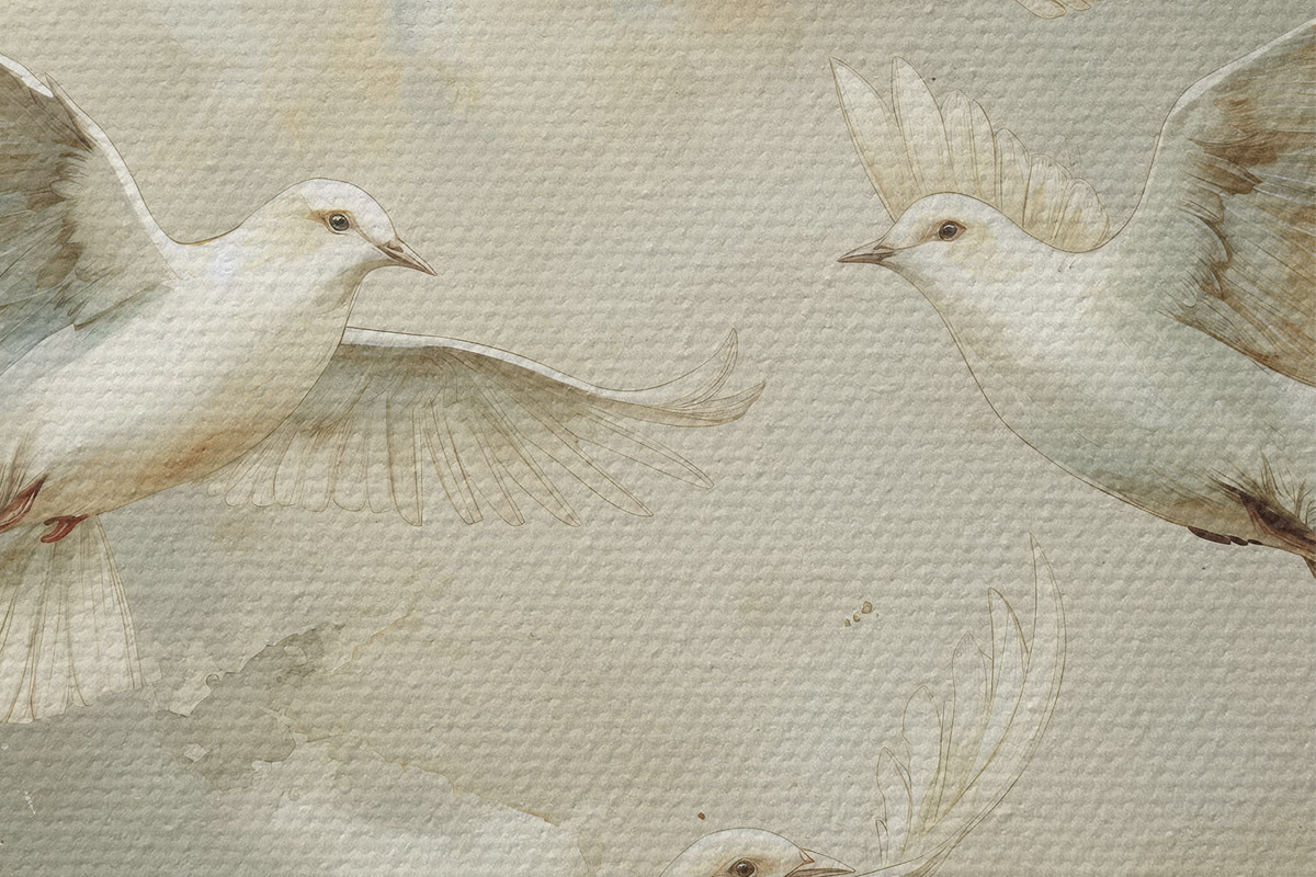 Ronde schilderijen Aquarel vliegende vogels, zachte beige en witte kleuren, duiven r39976