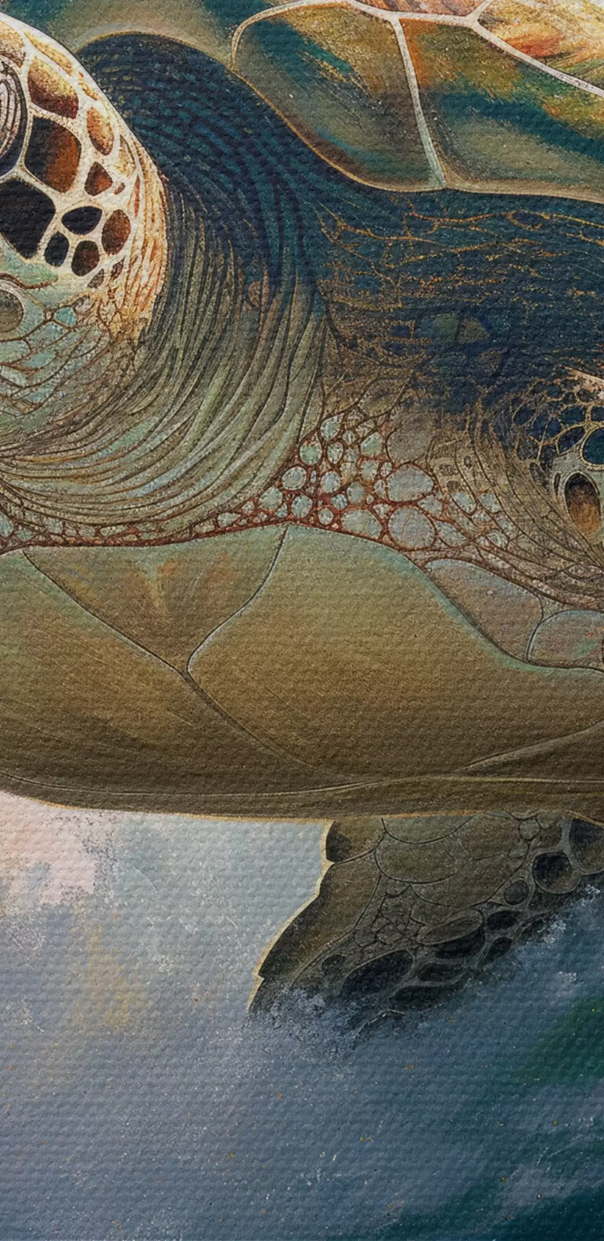 Ronde schilderijen Schildpad, water, groen, blauw Nr r40001