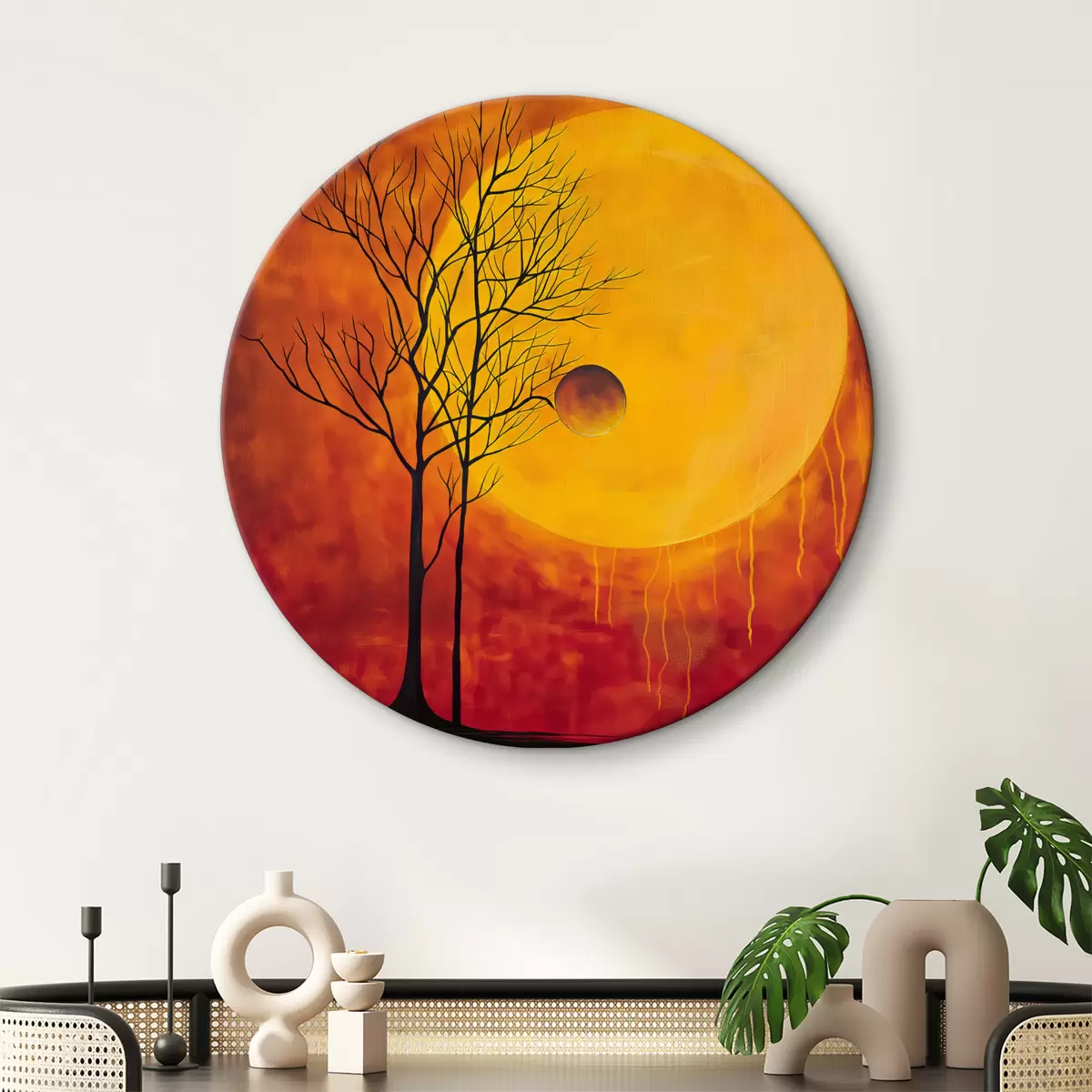 Ronde schilderijen Abstractie, zon, rood, geel r40005