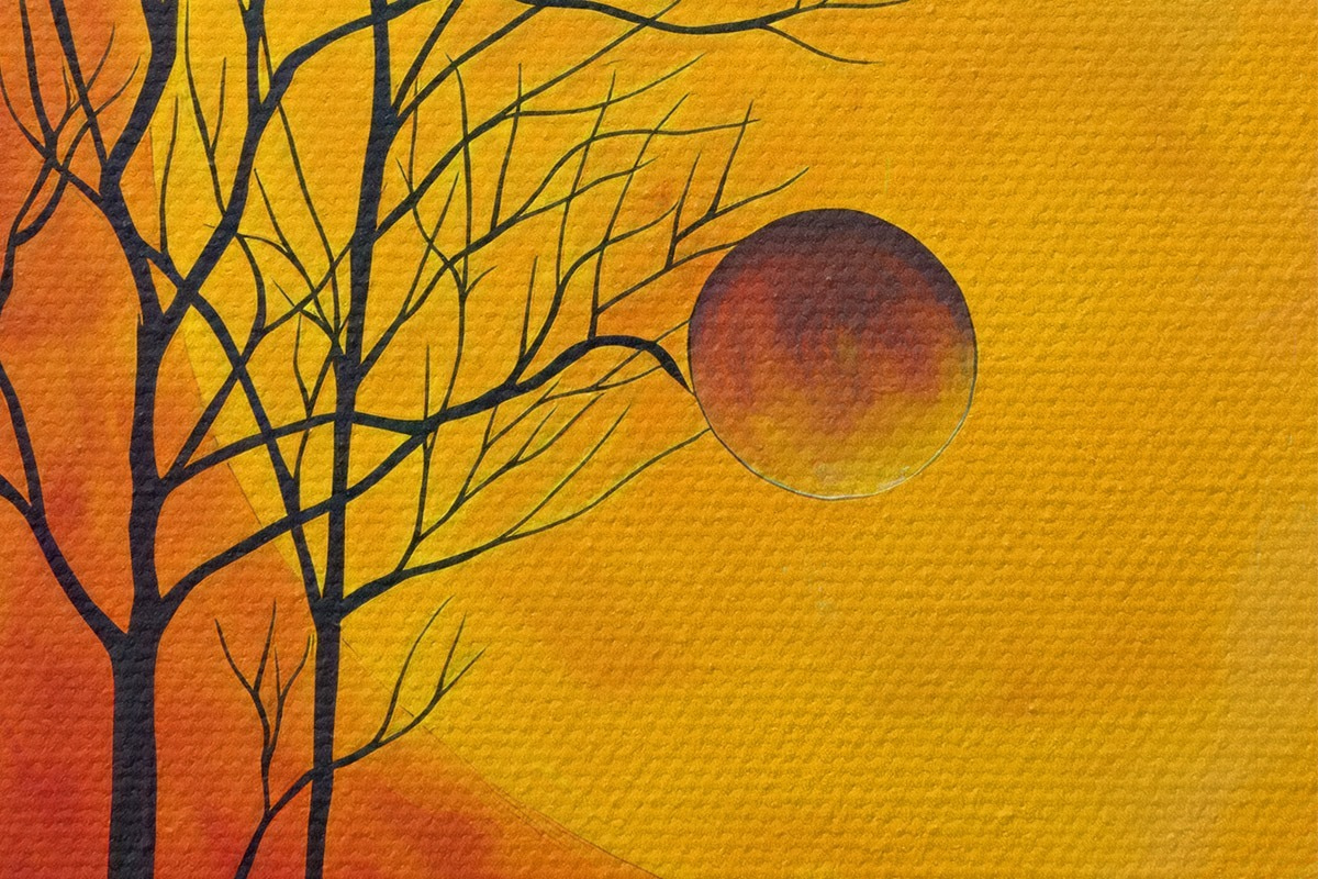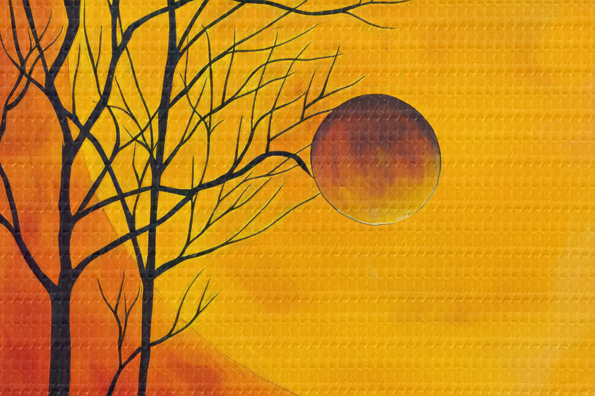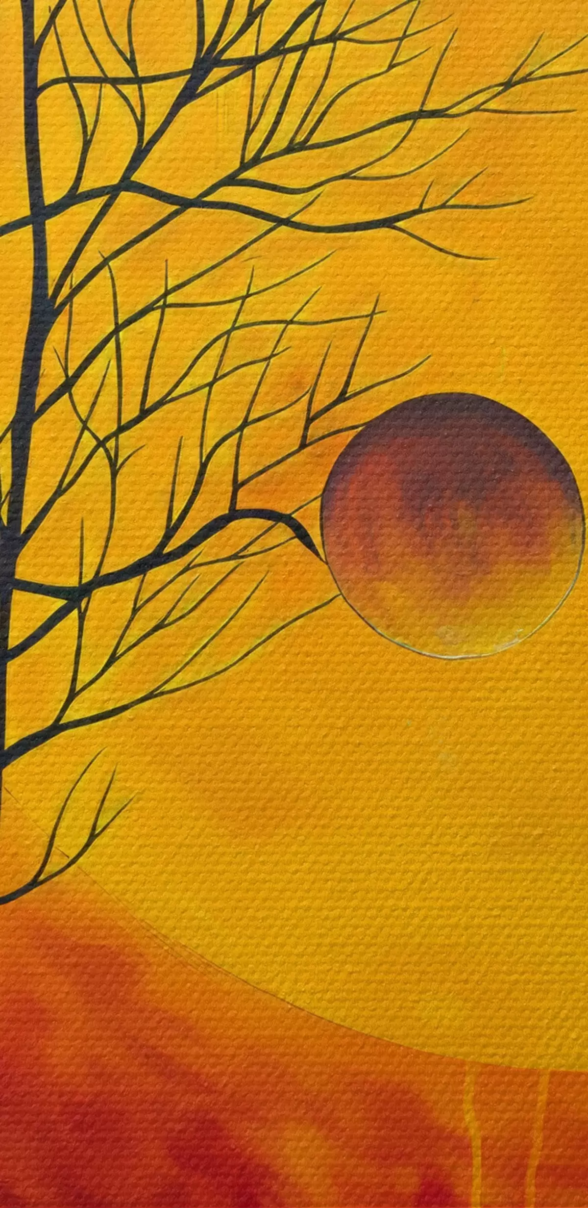 Ronde schilderijen Abstractie, zon, rood, geel Nr r40005