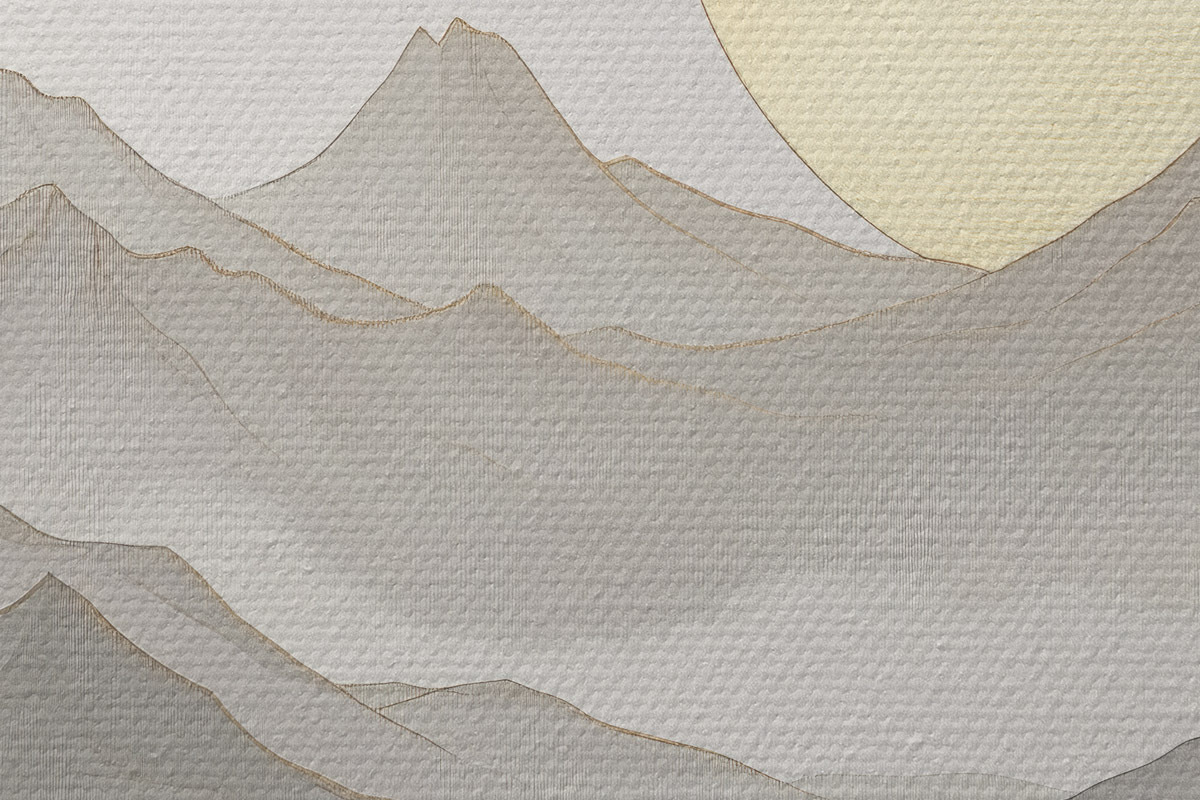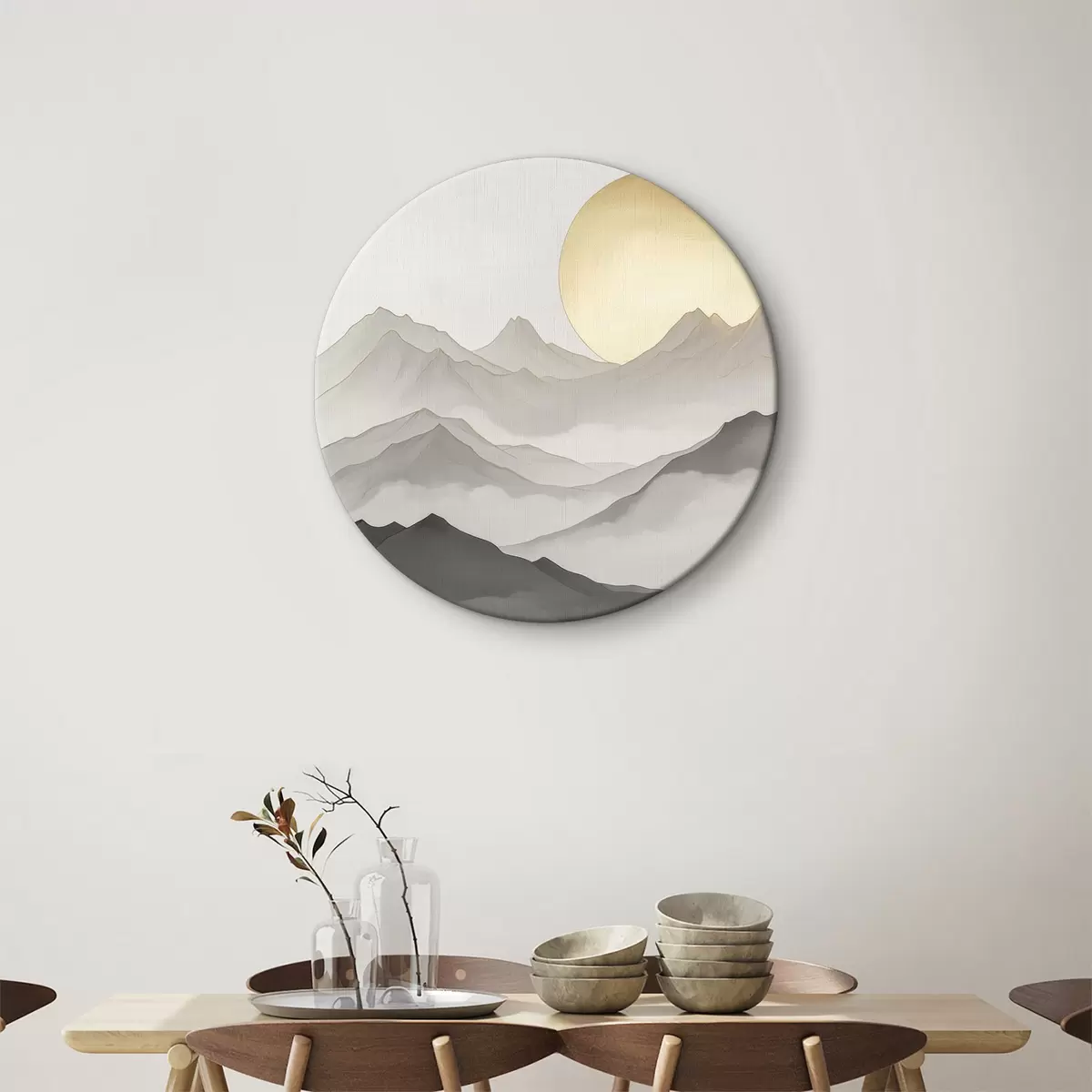 Ronde schilderijen Abstracte bergen met de zon Nr r40037