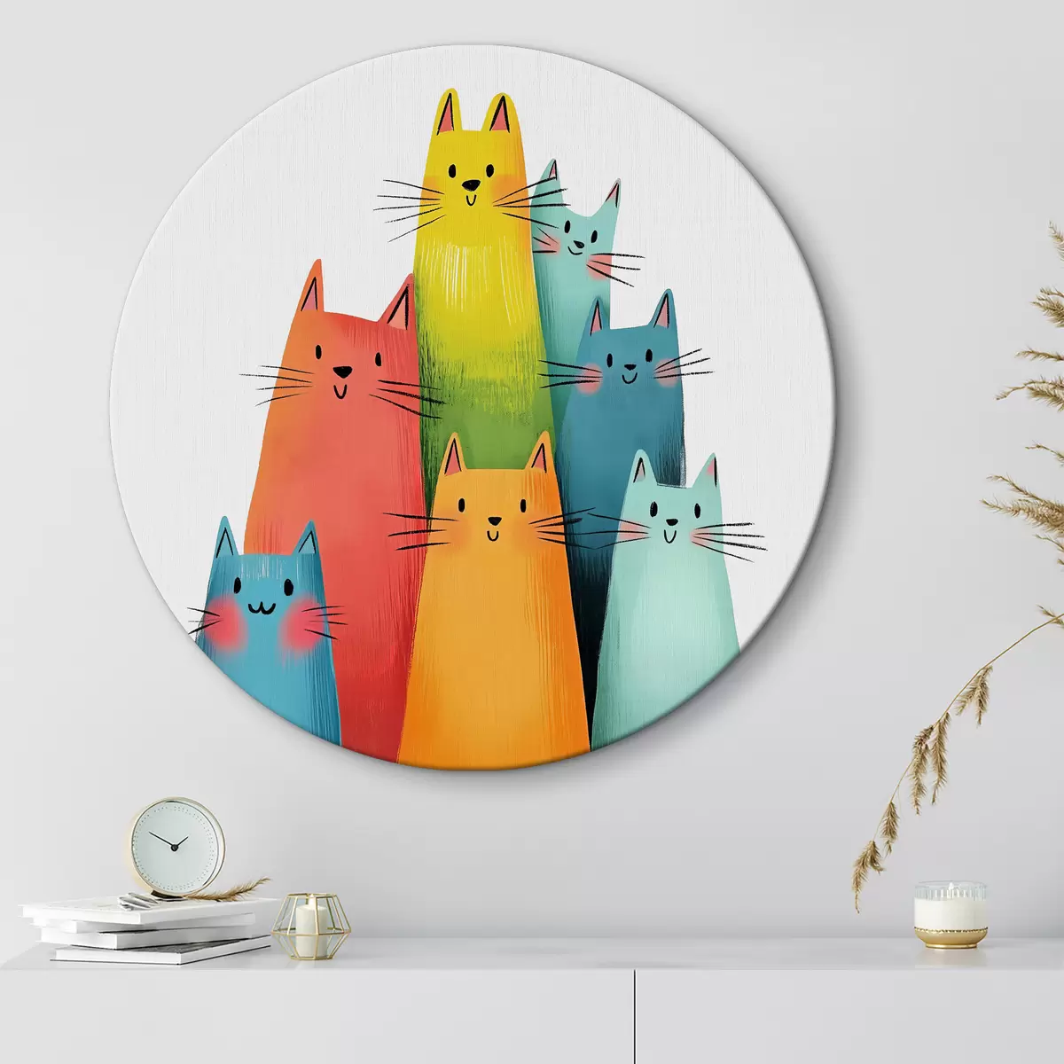 Ronde schilderijen Abstracte veelkleurige katten Nr r40041