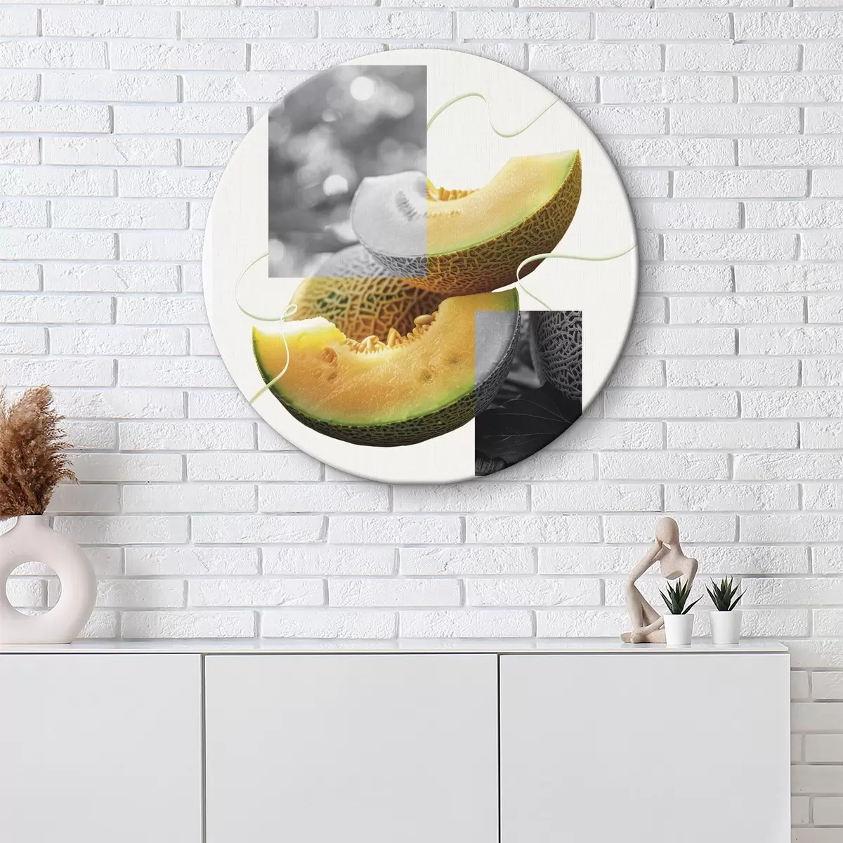 Ronde schilderijen Abstracte kunst met sappige meloen, fotorealisme, zomerfruit Nr r40044