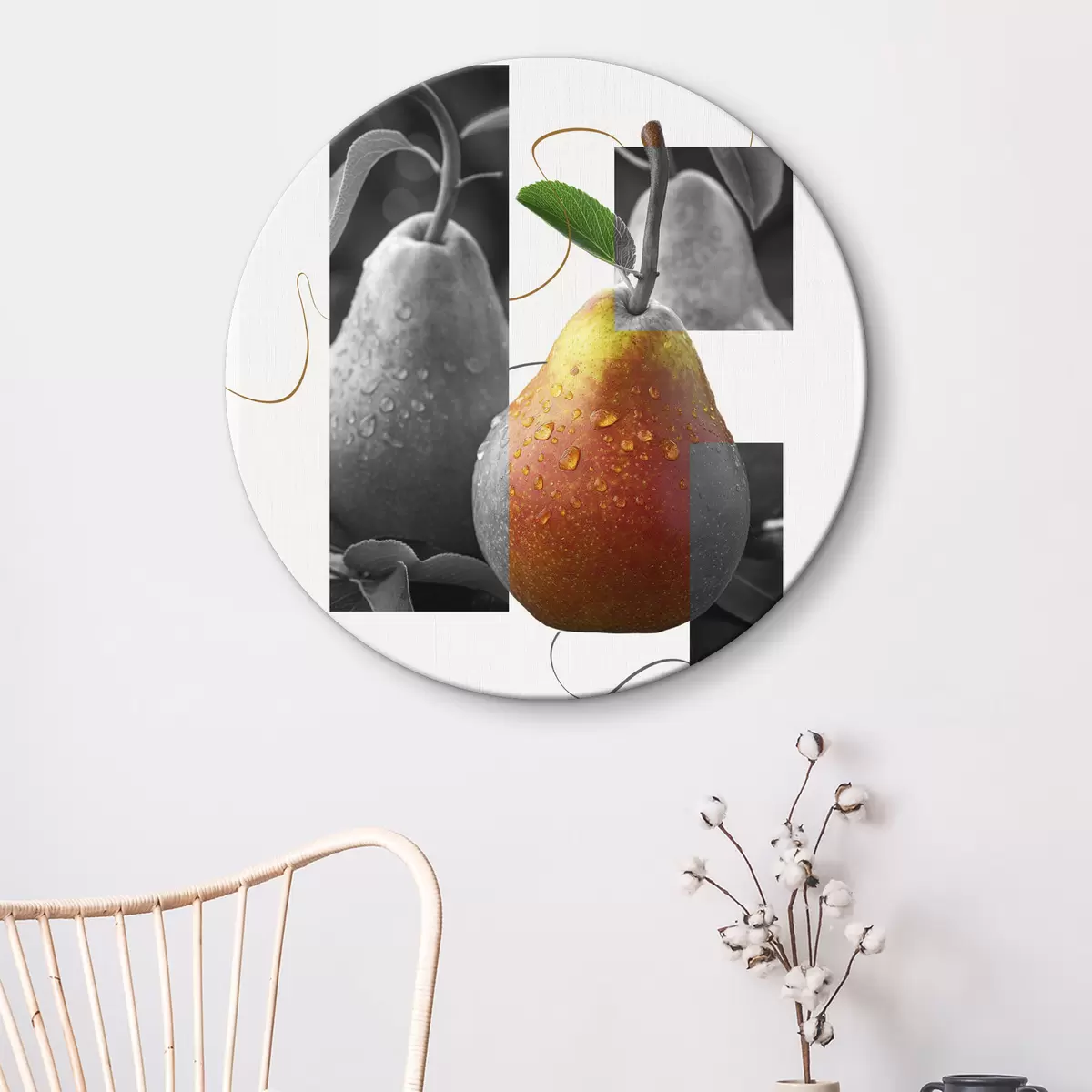 Ronde schilderijen Abstracte kunst met sappige perzik, fotorealisme, zomerfruit Nr r40050