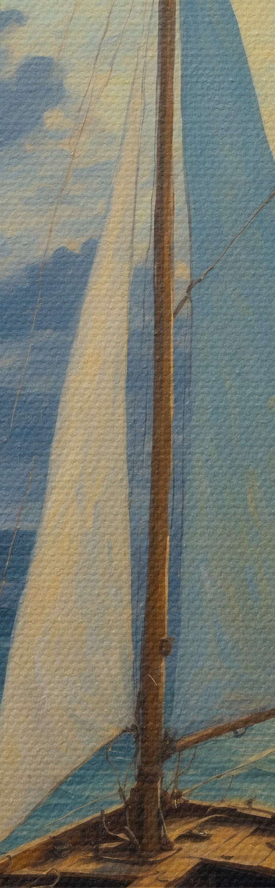 Er zijn drie soorten materiaal te bestellen: Economic Canvas - een dicht en duurzaam materiaal voor digitaal printen, identiek aan schildersdoek, waterdicht oppervlak, realistische weergave van details, materiaal met gemiddelde korrel. Premium Canvas - de textuur lijkt op die van schildersdoek (verweven kleine draden). Zachte, gedetailleerde reproductie van de afbeelding op een mat oppervlak. Eco-Premium - hoogwaardige 100% katoenen stof. Dankzij de natuurlijke katoenvezels is het materiaal duurzaam en slijtvast. Uitstekende kleurweergave en detail.
