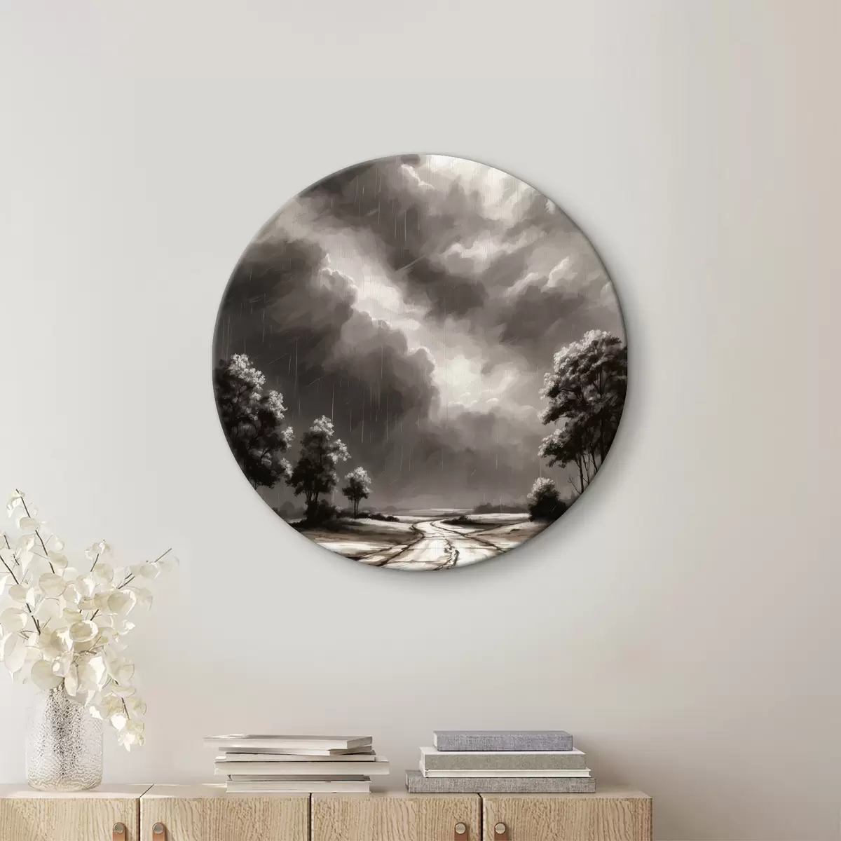 Ronde schilderijen Onverharde weg bij hevige regenval Nr r40059