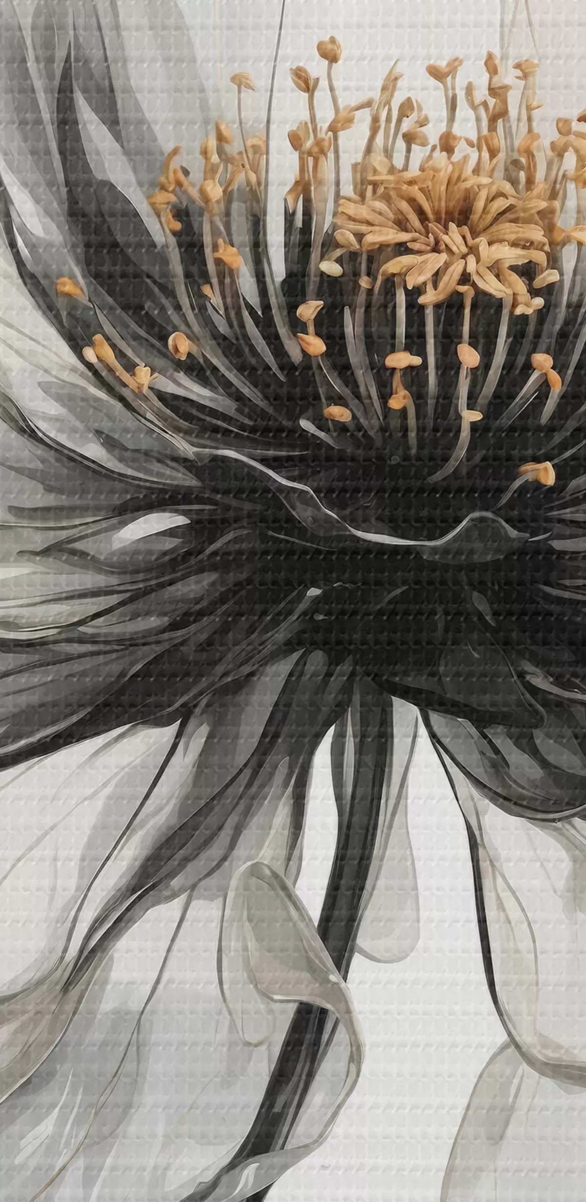 Ronde schilderijen Transparante zwarte bloem op witte achtergrond Nr r40066