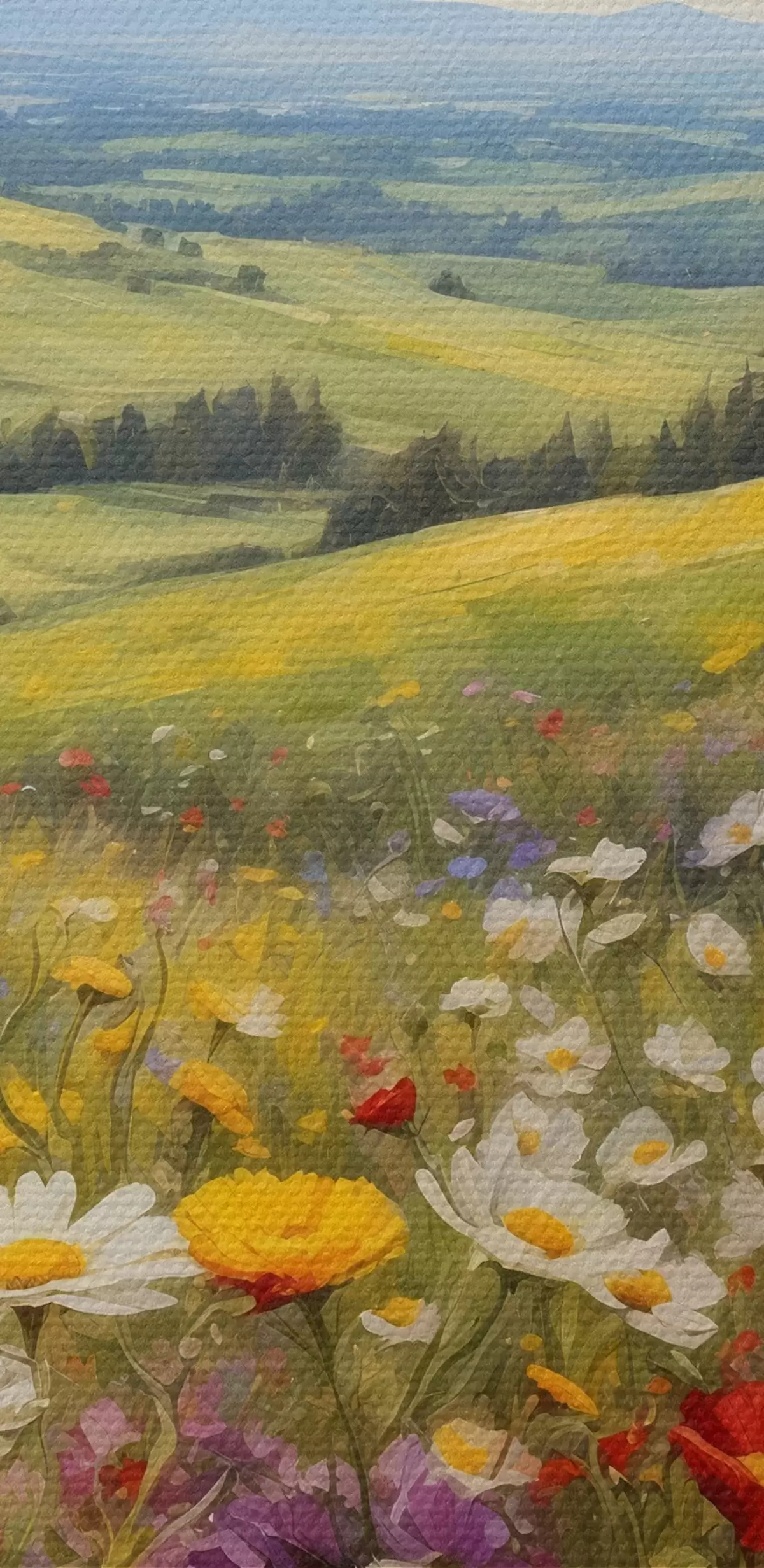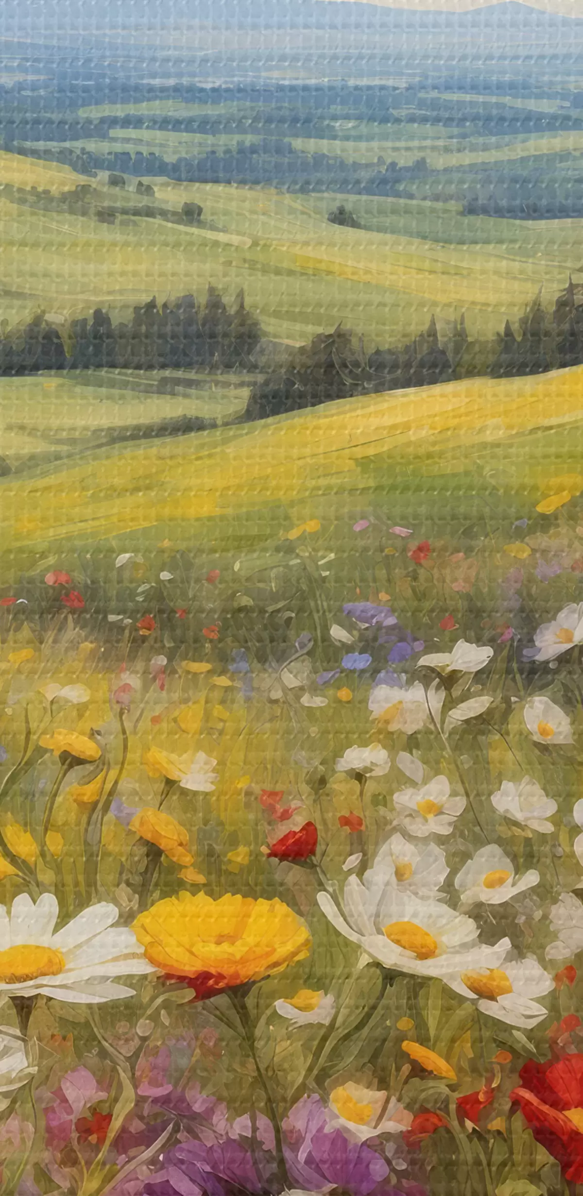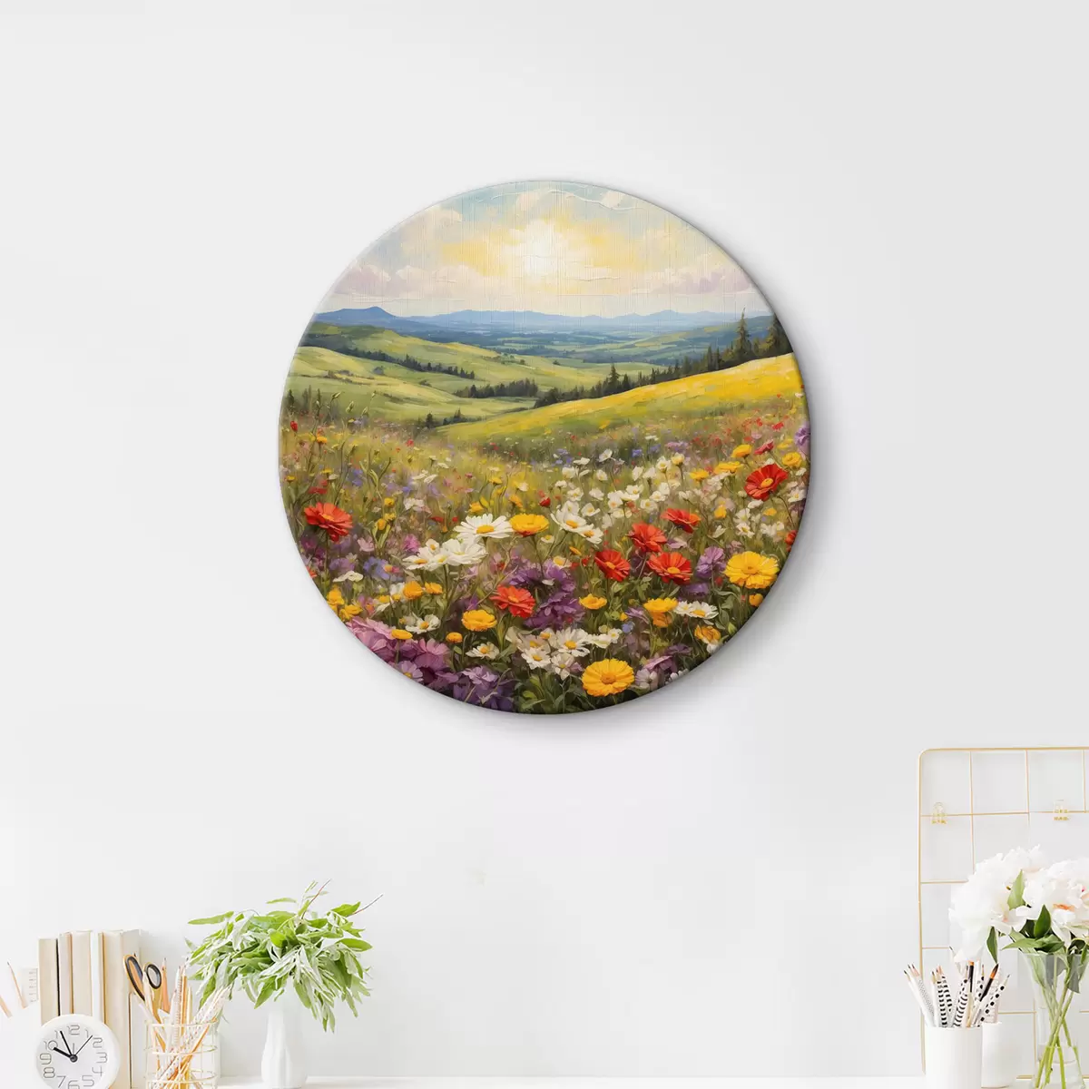 Ronde schilderijen Bloemenveld bij zonsondergang Nr r40073