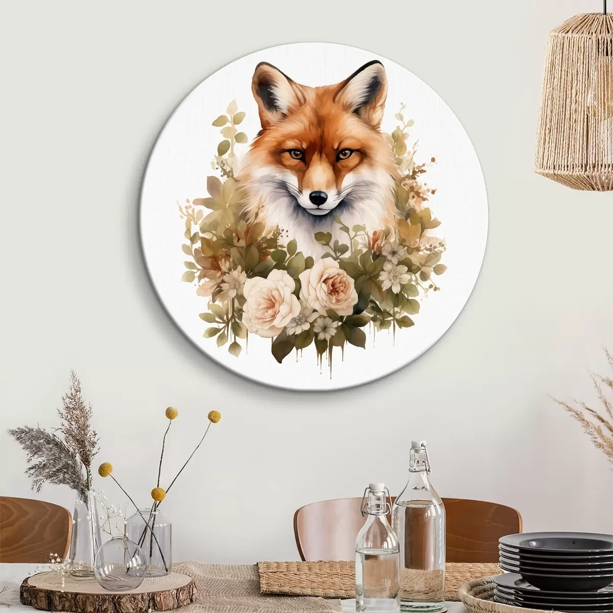 Ronde schilderijen Portret van vos in witte vintage rozen aquarel r40093