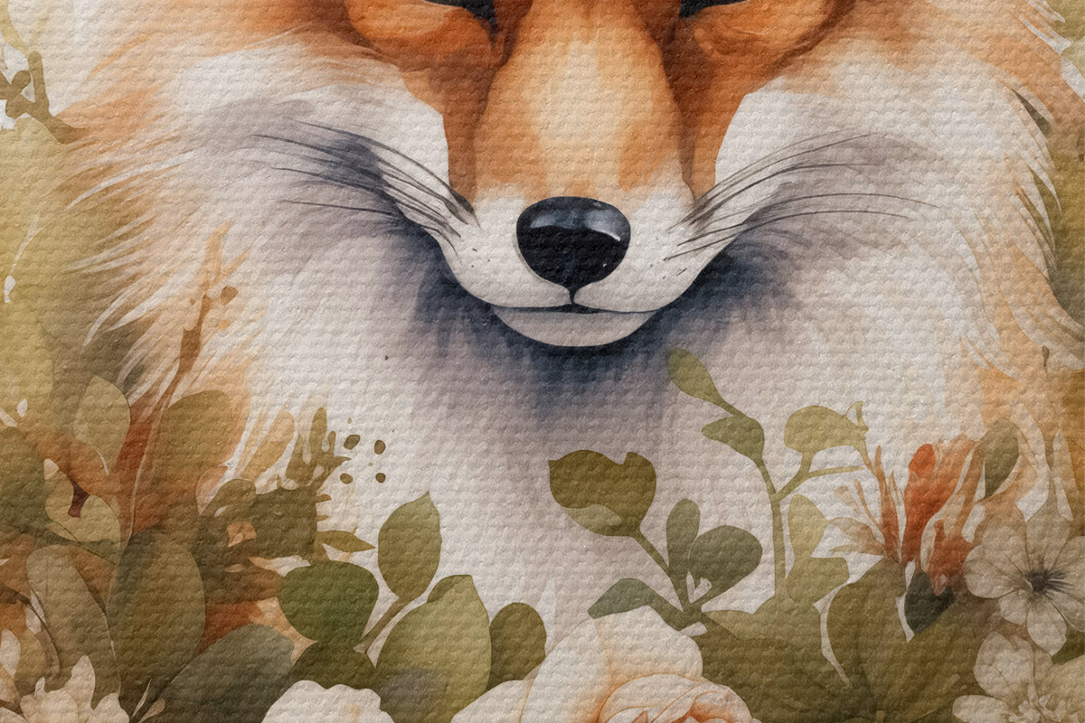 Ronde schilderijen Portret van vos in witte vintage rozen aquarel Nr r40093