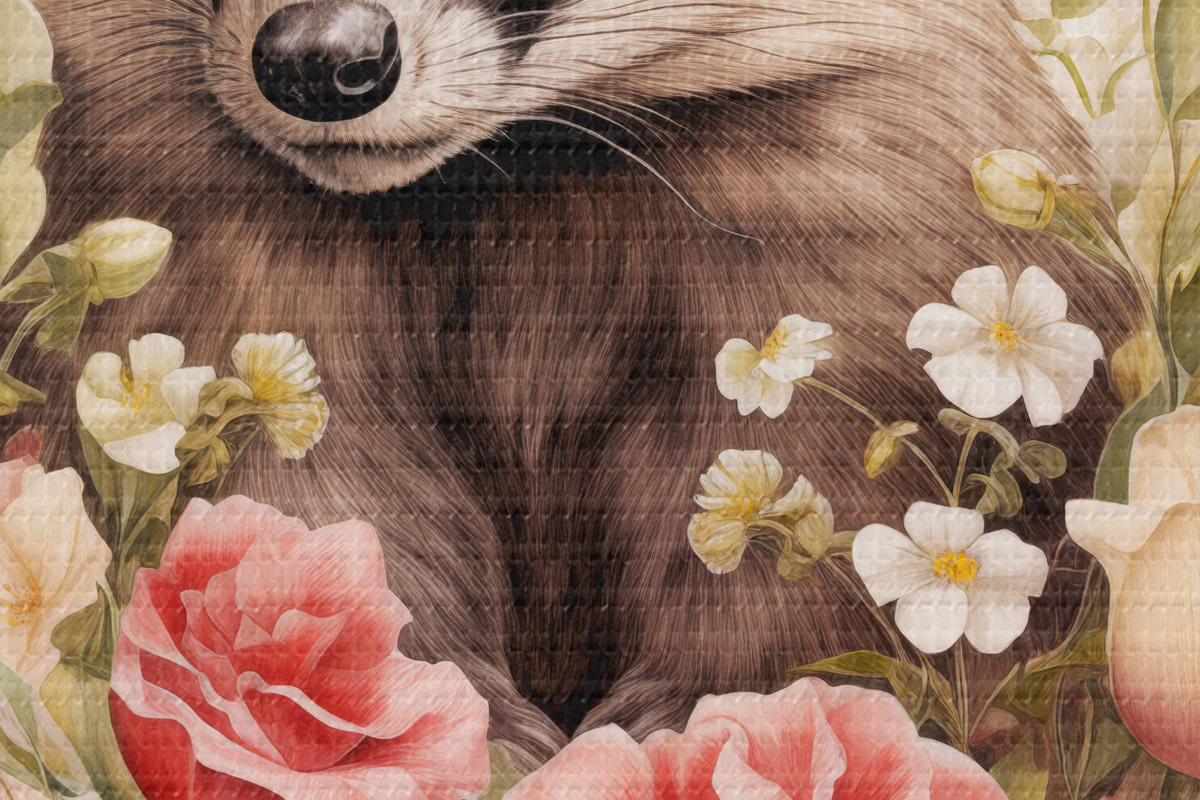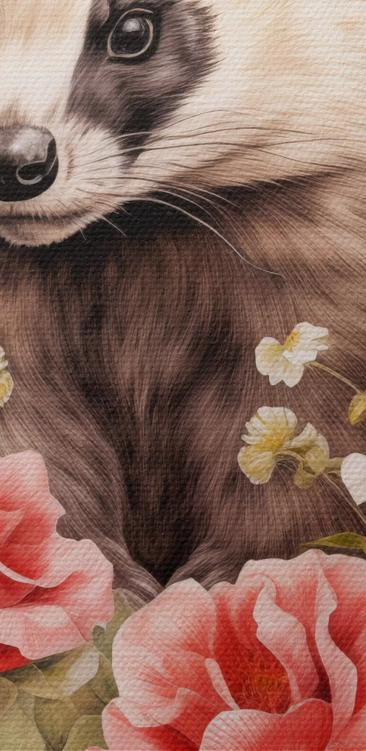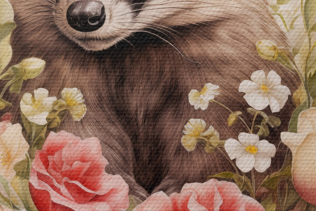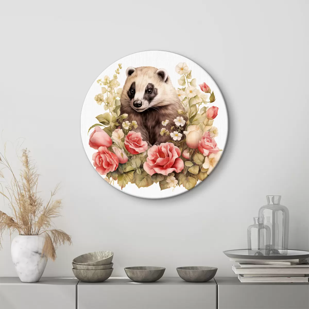 Ronde schilderijen Portret van een das in roze vintage rozen aquarel Nr r40094