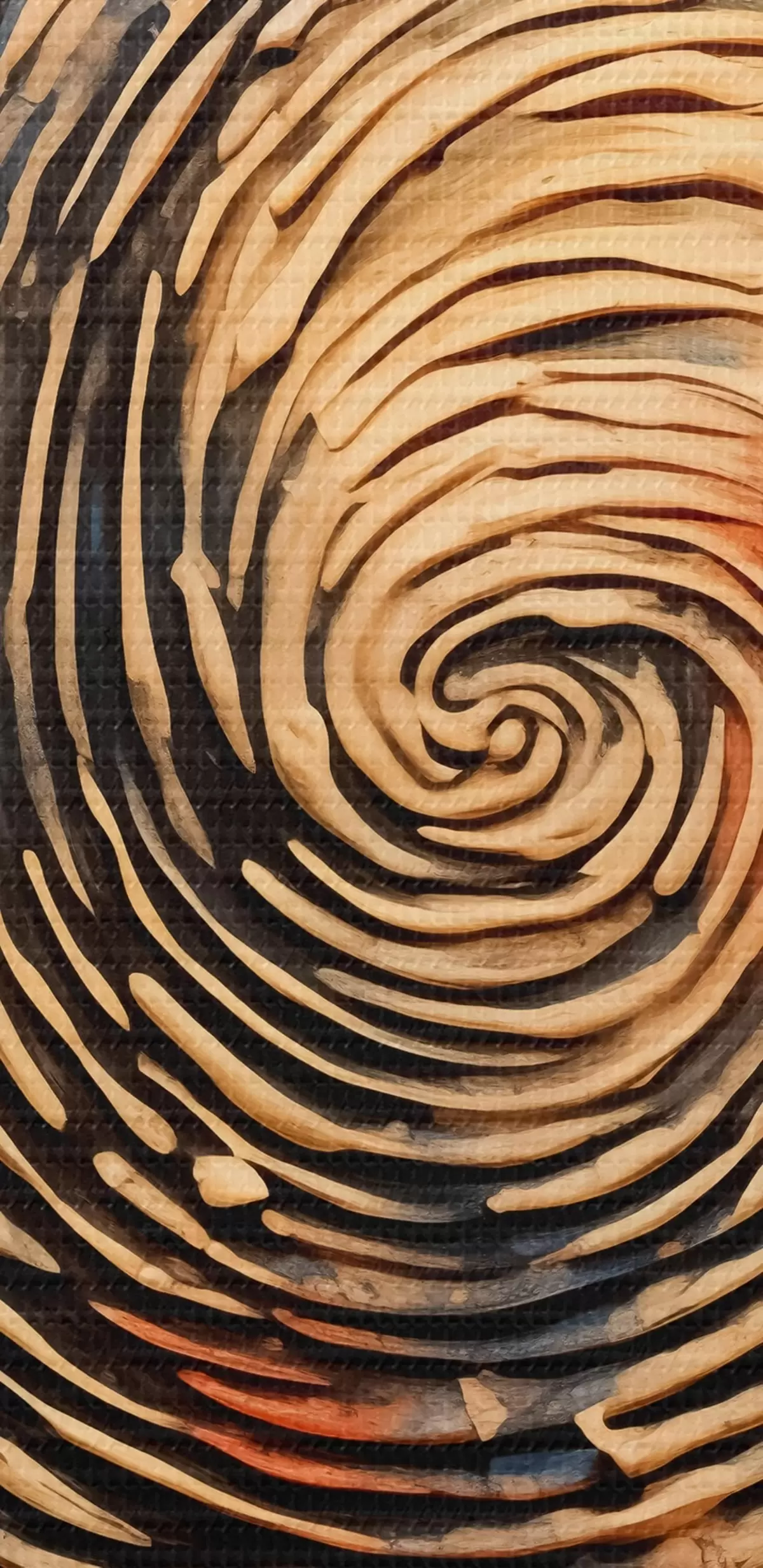 Ronde schilderijen Vingerafdruk in verf, beige, rood, oranje, geel, zwarte kleur Nr r40105