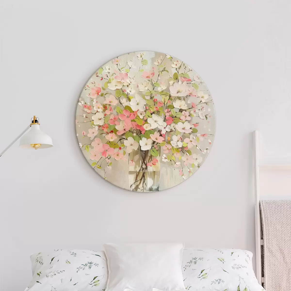 Ronde schilderijen Een boeket bloemen en een vaas r40115