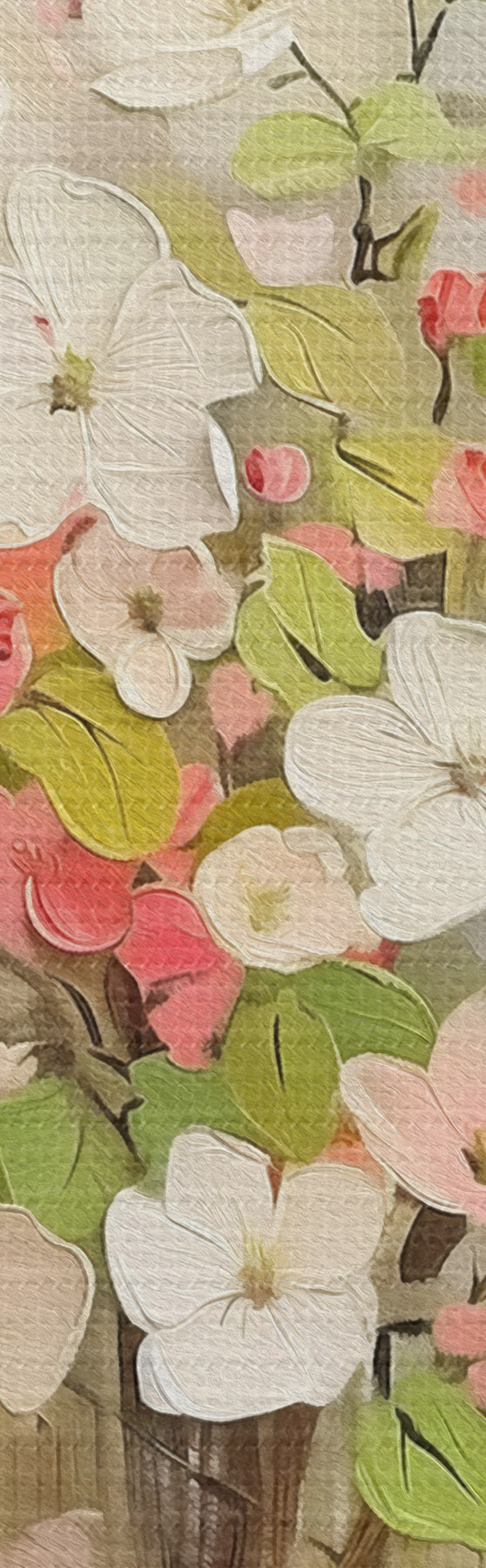 Er zijn drie soorten materiaal te bestellen: Economic Canvas - een dicht en duurzaam materiaal voor digitaal printen, identiek aan schildersdoek, waterdicht oppervlak, realistische weergave van details, materiaal met gemiddelde korrel. Premium Canvas - de textuur lijkt op die van schildersdoek (verweven kleine draden). Zachte, gedetailleerde reproductie van de afbeelding op een mat oppervlak. Eco-Premium - hoogwaardige 100% katoenen stof. Dankzij de natuurlijke katoenvezels is het materiaal duurzaam en slijtvast. Uitstekende kleurweergave en detail.