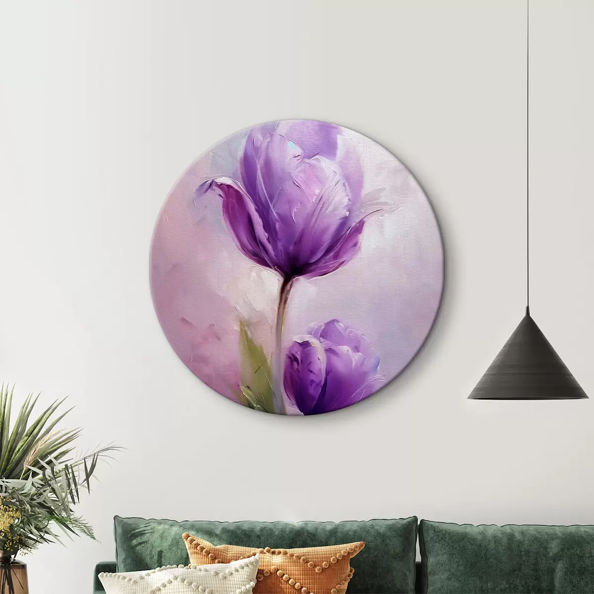 Ronde schilderijen Paarse tulp bloem Nr r40122