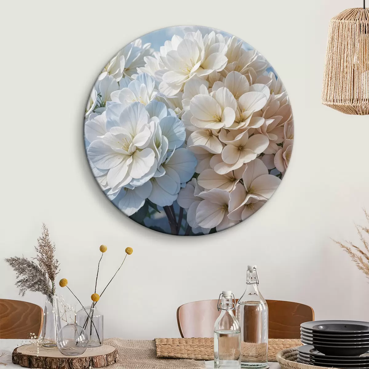 Ronde schilderijen Zachte, pastelkleurige dahliabloemen met delicate bloemblaadjes die bloeien tegen een wazige achtergrond Nr r40146