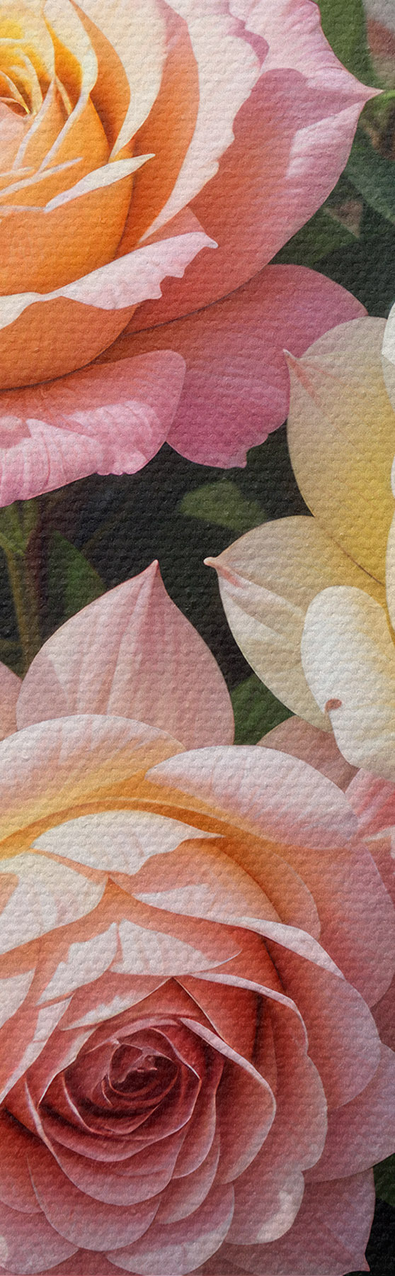 Er zijn drie soorten materiaal te bestellen: Economic Canvas - een dicht en duurzaam materiaal voor digitaal printen, identiek aan schildersdoek, waterdicht oppervlak, realistische weergave van details, materiaal met gemiddelde korrel. Premium Canvas - de textuur lijkt op die van schildersdoek (verweven kleine draden). Zachte, gedetailleerde reproductie van de afbeelding op een mat oppervlak. Eco-Premium - hoogwaardige 100% katoenen stof. Dankzij de natuurlijke katoenvezels is het materiaal duurzaam en slijtvast. Uitstekende kleurweergave en detail.