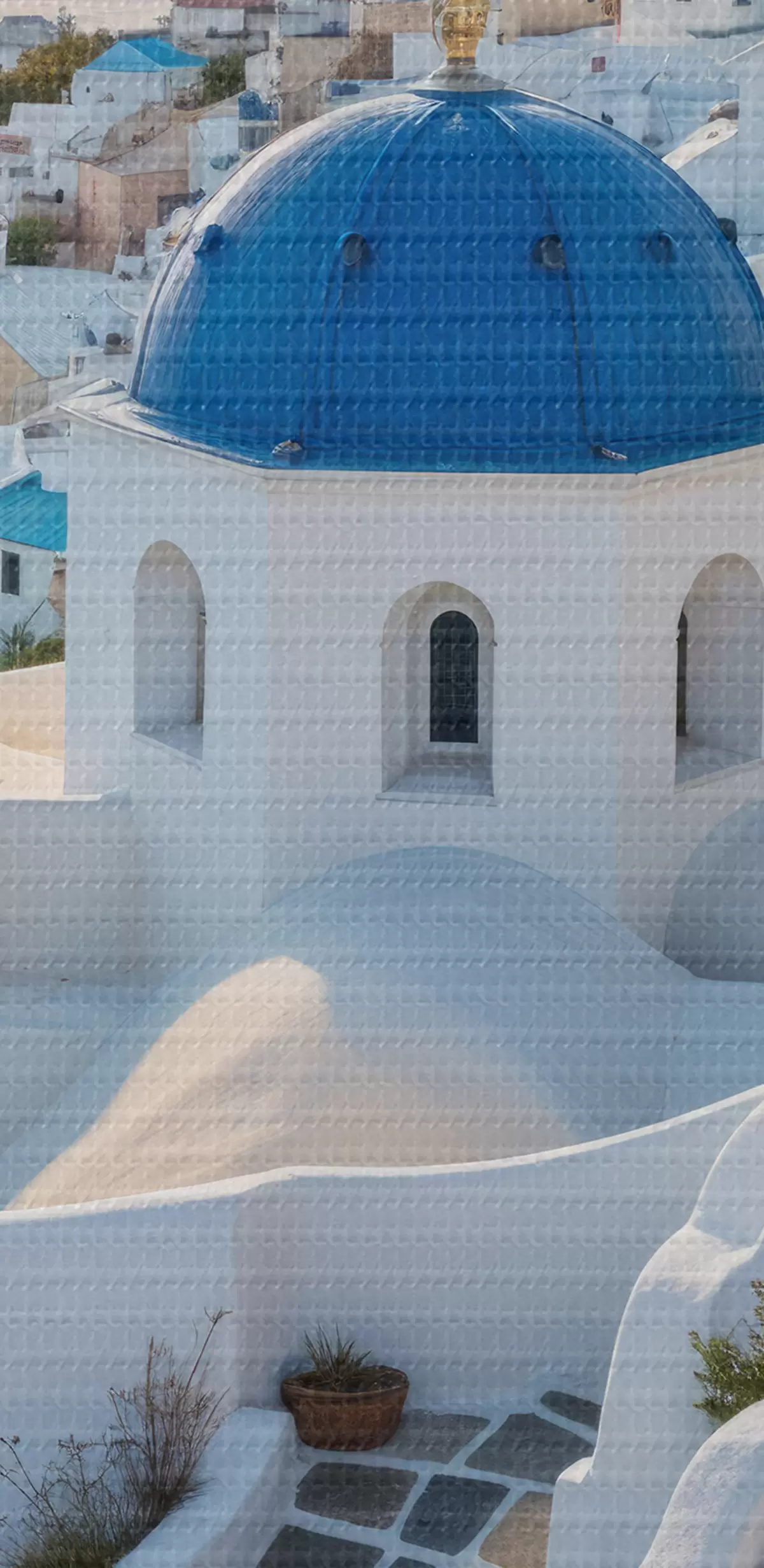 Ronde schilderijen Het eiland Santorini, Griekenland. De stad is gebouwd op een heuvel met uitzicht op de Egeïsche Zee Nr r40160