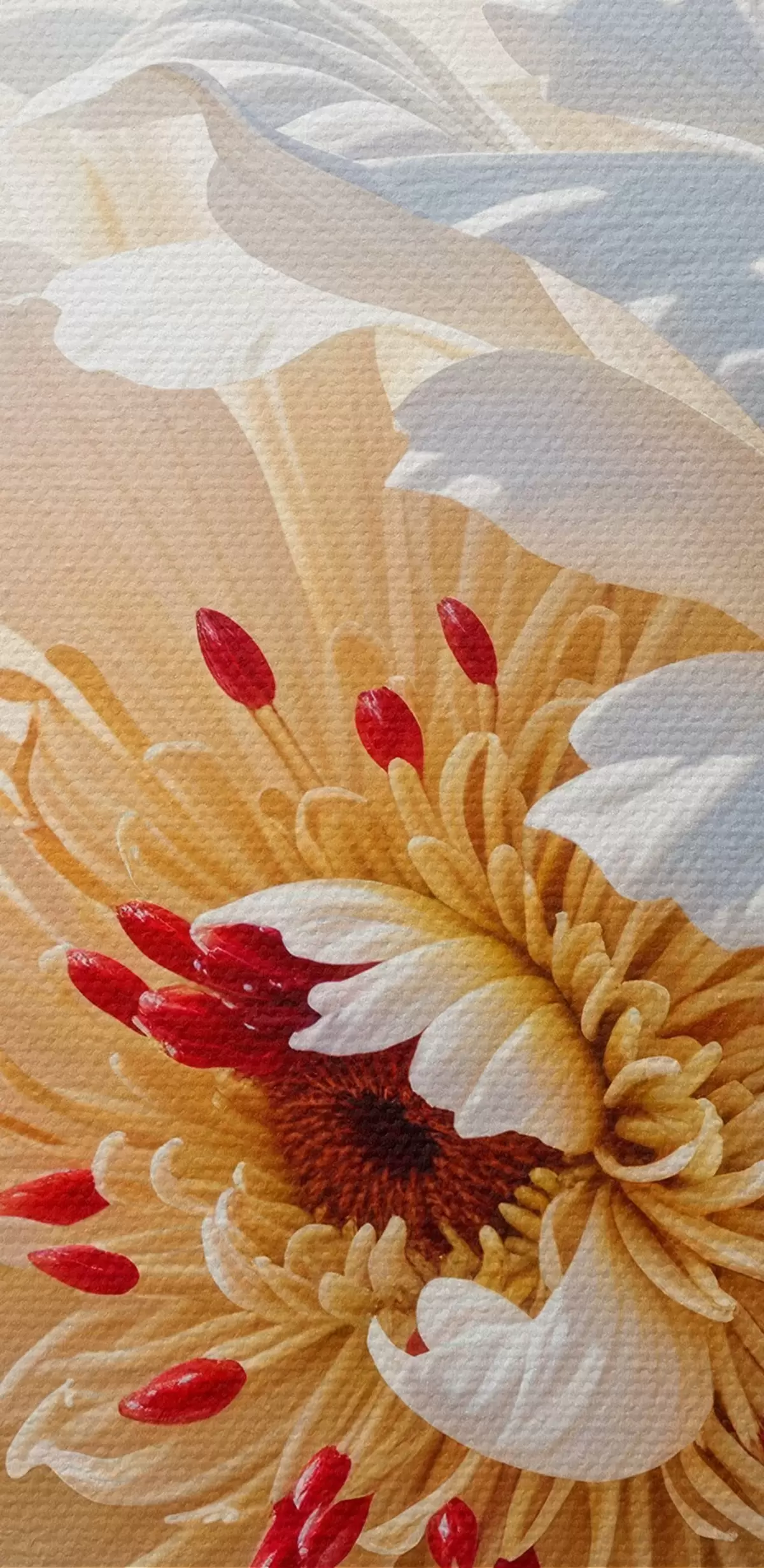 Er zijn drie soorten materiaal te bestellen: Economic Canvas - een dicht en duurzaam materiaal voor digitaal printen, identiek aan schildersdoek, waterdicht oppervlak, realistische weergave van details, materiaal met gemiddelde korrel. Premium Canvas - de textuur lijkt op die van schildersdoek (verweven kleine draden). Zachte, gedetailleerde reproductie van de afbeelding op een mat oppervlak. Eco-Premium - hoogwaardige 100% katoenen stof. Dankzij de natuurlijke katoenvezels is het materiaal duurzaam en slijtvast. Uitstekende kleurweergave en detail.