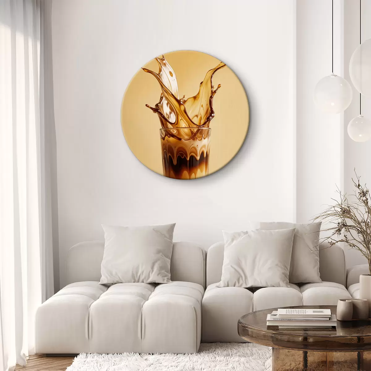 Ronde schilderijen Een glas gevuld met koffie met een dramatisch spettereffect dat een abstract en dynamisch visueel effect creëert Nr r40165