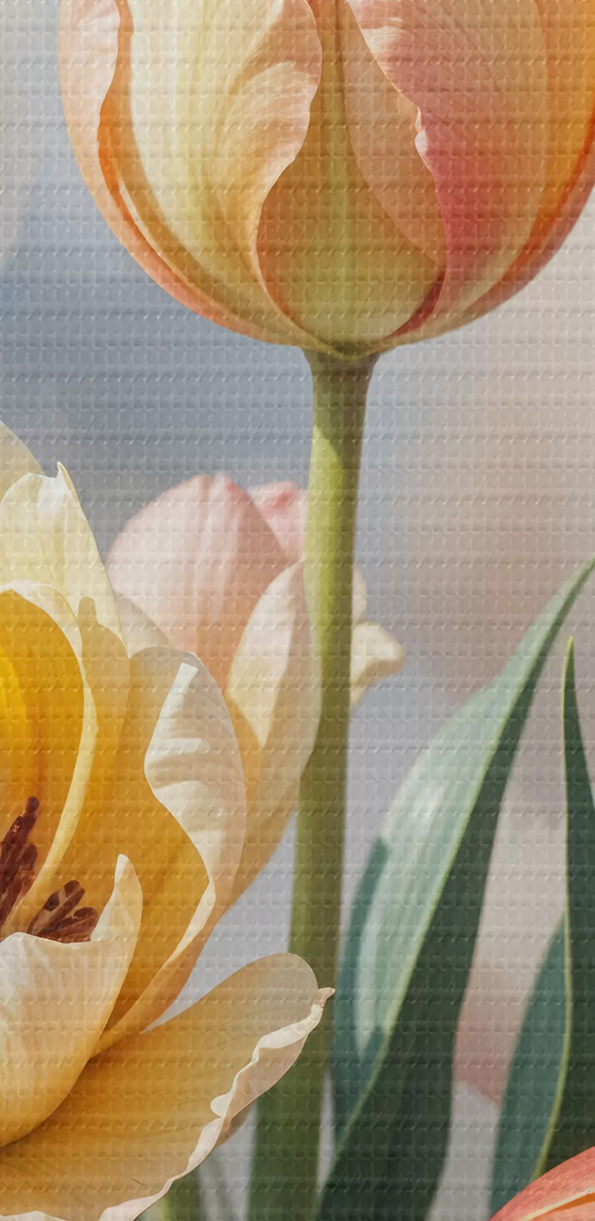 Er zijn drie soorten materiaal te bestellen: Economic Canvas - een dicht en duurzaam materiaal voor digitaal printen, identiek aan schildersdoek, waterdicht oppervlak, realistische weergave van details, materiaal met gemiddelde korrel. Premium Canvas - de textuur lijkt op die van schildersdoek (verweven kleine draden). Zachte, gedetailleerde reproductie van de afbeelding op een mat oppervlak. Eco-Premium - hoogwaardige 100% katoenen stof. Dankzij de natuurlijke katoenvezels is het materiaal duurzaam en slijtvast. Uitstekende kleurweergave en detail.