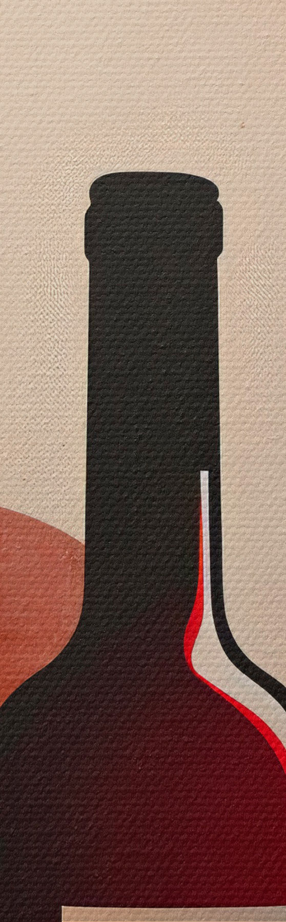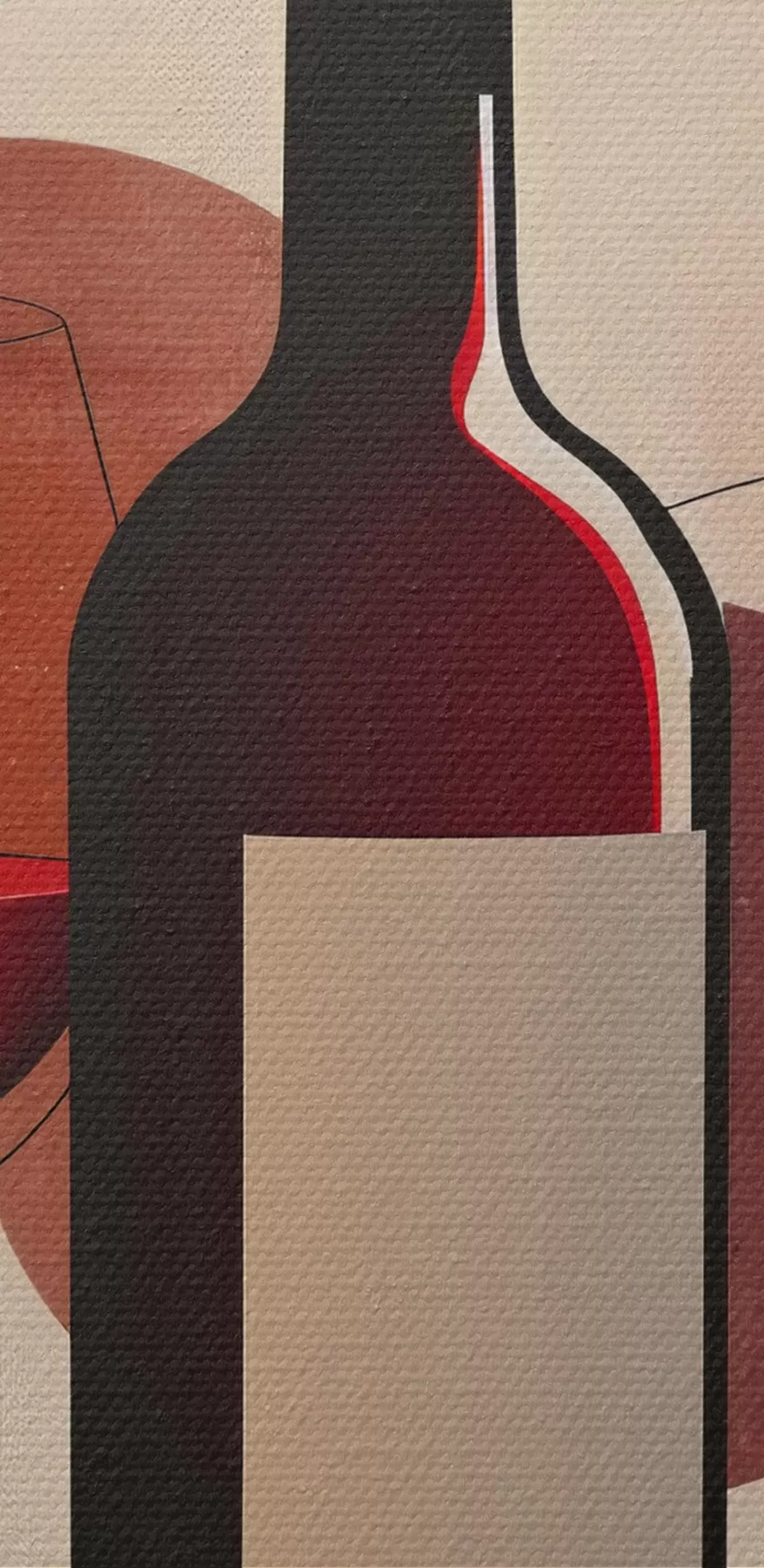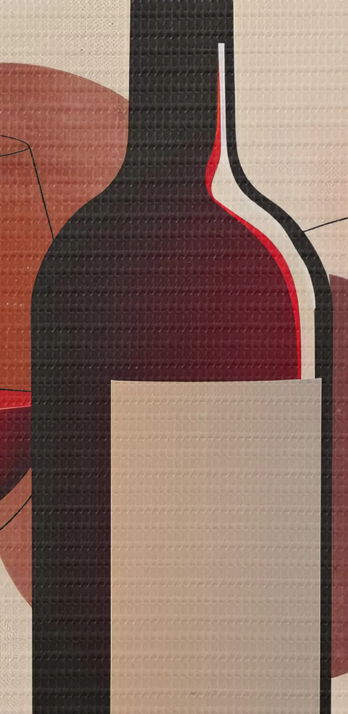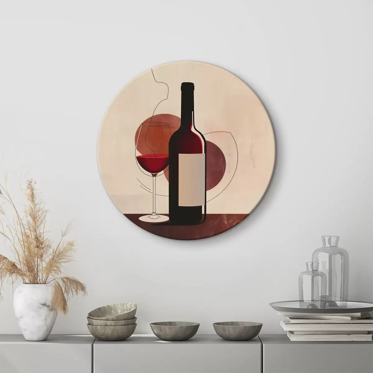 Ronde schilderijen Fles wijn en glas met wijn Nr r40191