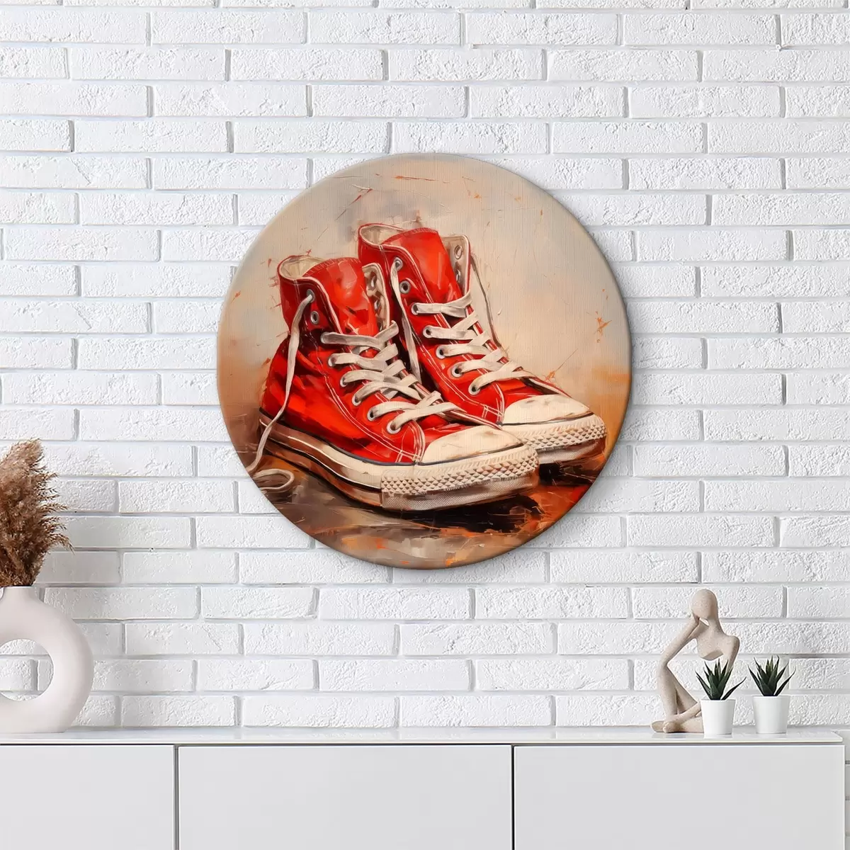 Ronde schilderijen Rode sneakers met witte veters Nr r40219
