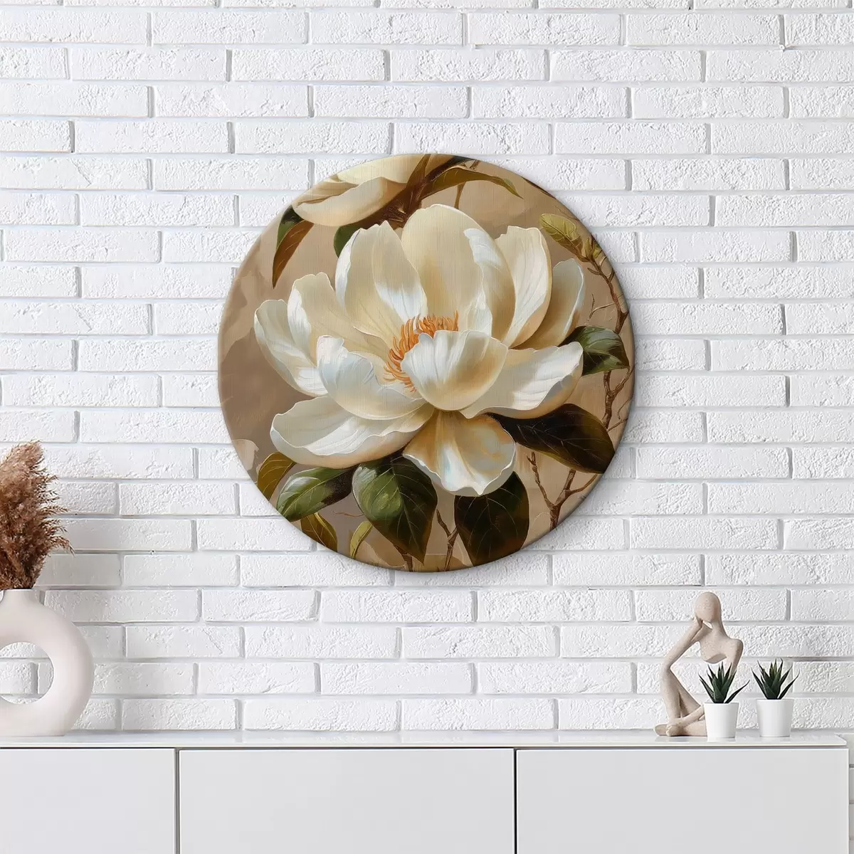 Ronde schilderijen weelderige bloemen in beige kleur Nr r40237