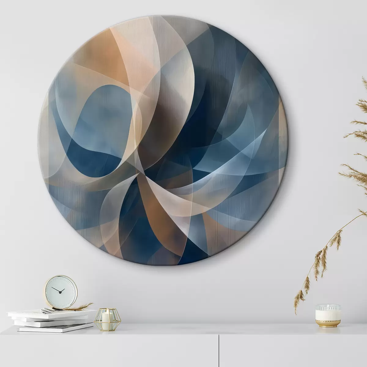 Ronde schilderijen blauw beige abstracte bloem r40245