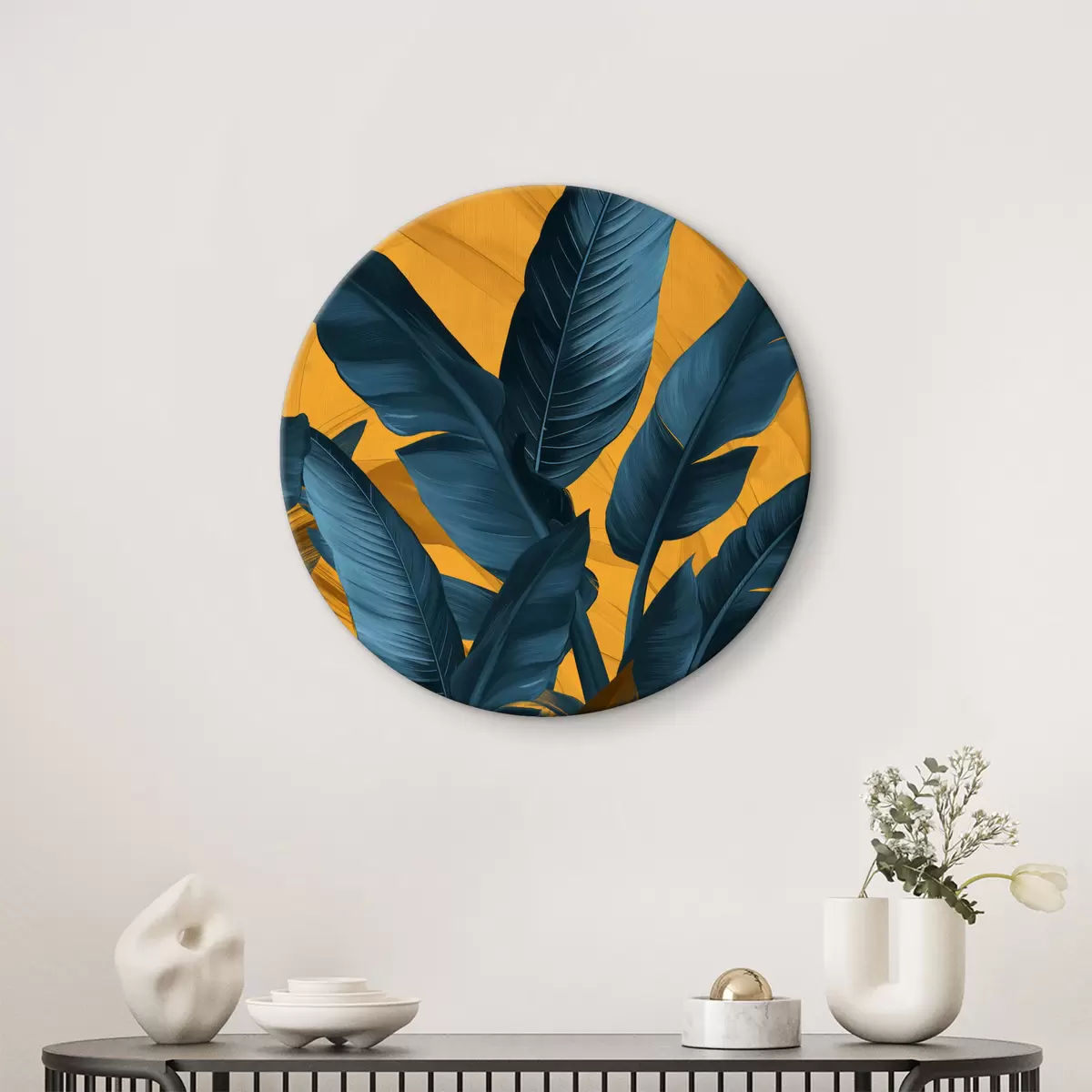 Ronde schilderijen heldere bananenbladeren Nr r40252