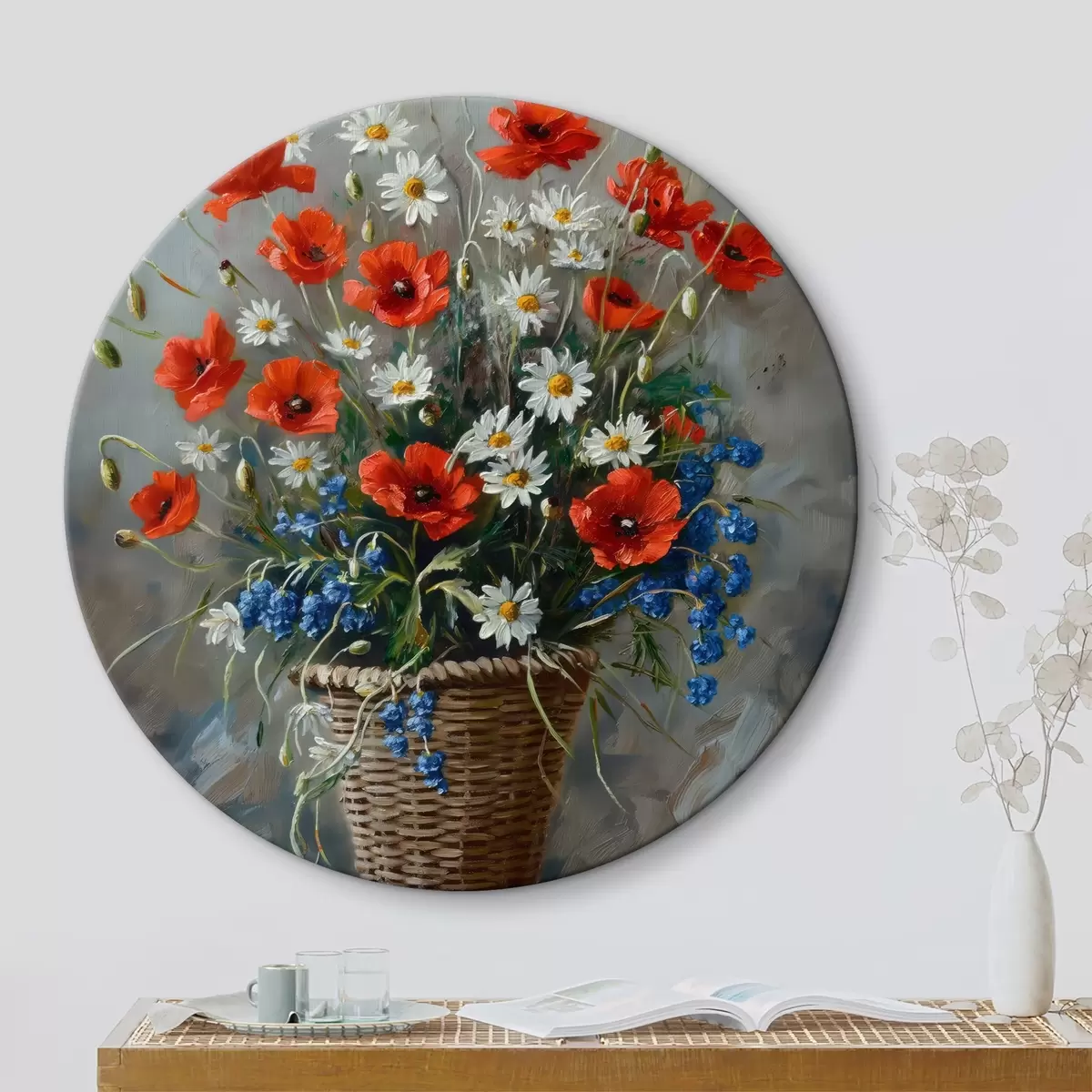 Ronde schilderijen wilde bloemen worden getekend Nr r40259