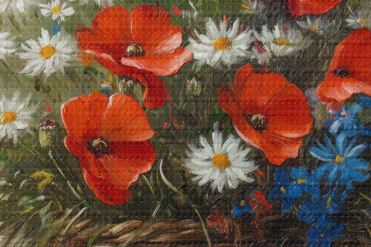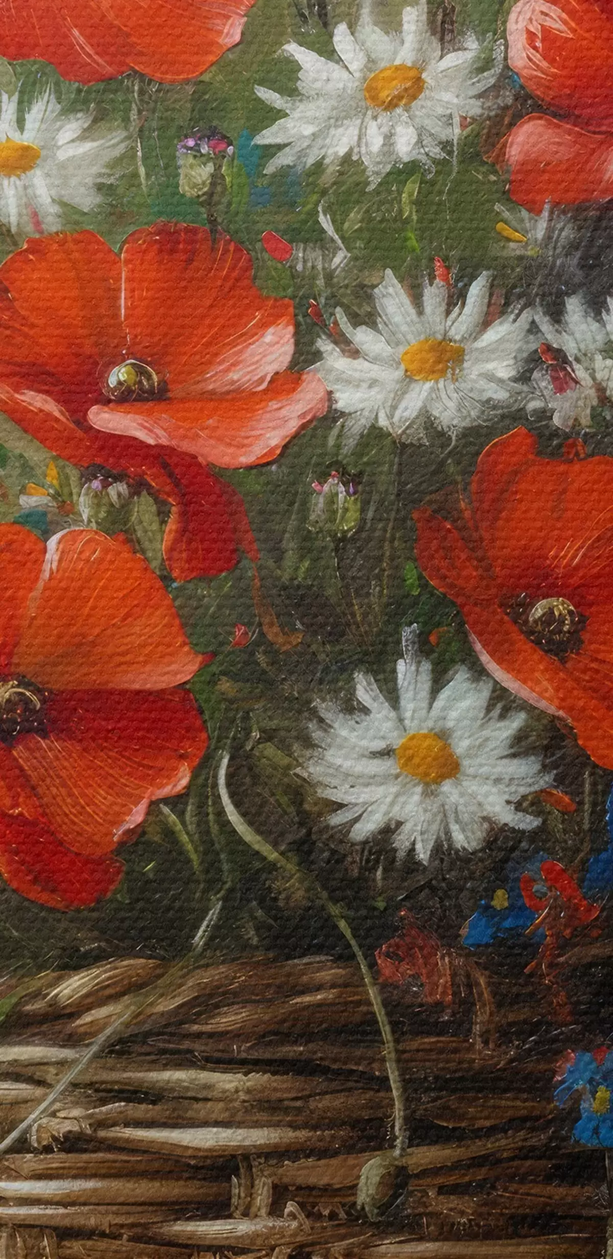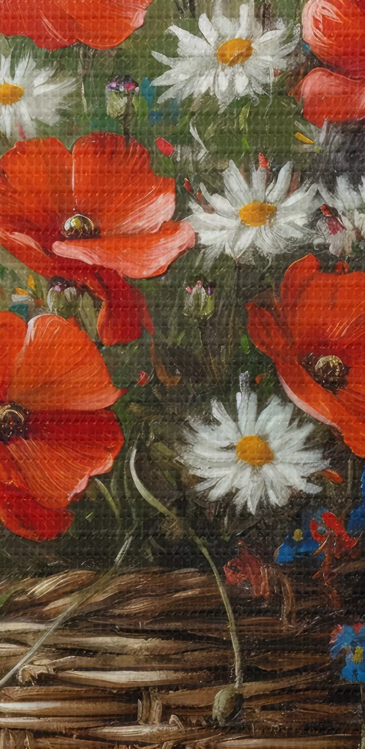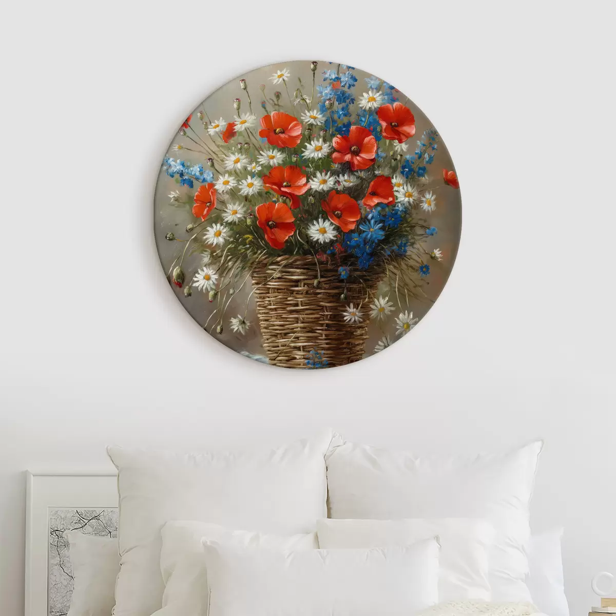 Ronde schilderijen een boeket wilde bloemen in een mand Nr r40262