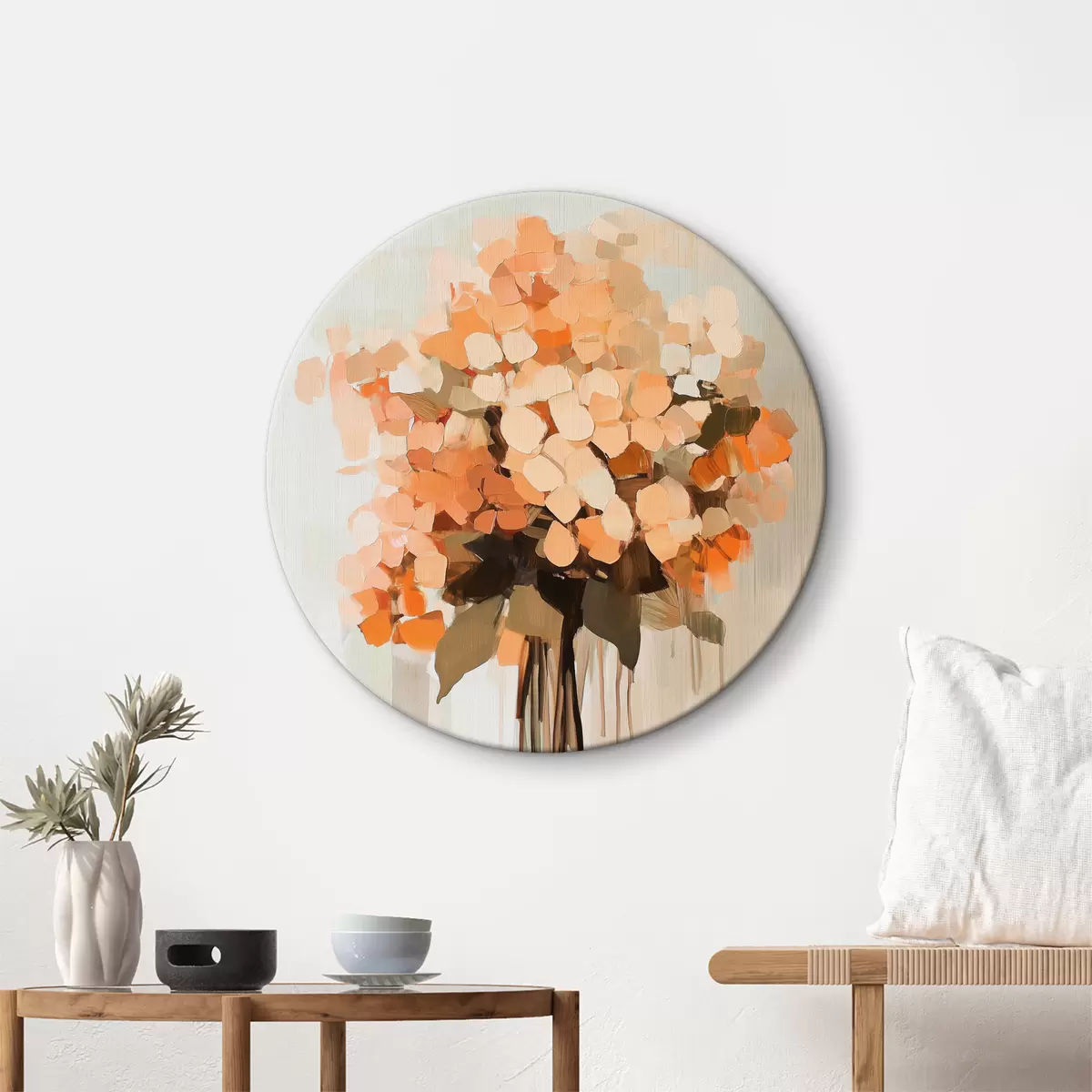Ronde schilderijen Een boeket beige bloemen Nr r40270