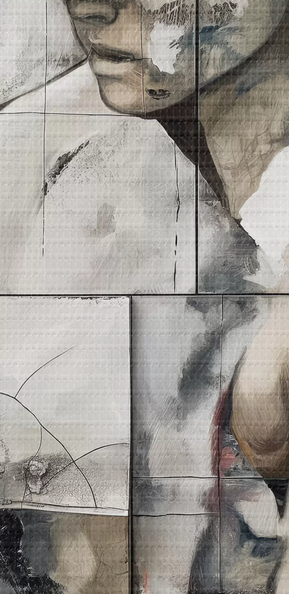 Het schilderij kan voorzichtig worden schoongeveegd met een droge zachte doek of spons; het wordt niet aanbevolen om natte producten te gebruiken. Het gebruik van een vochtige spons is alleen toegestaan als het schilderij gevernist is.