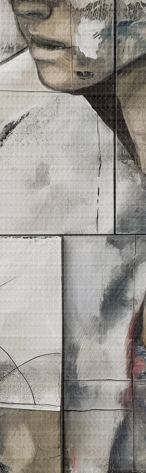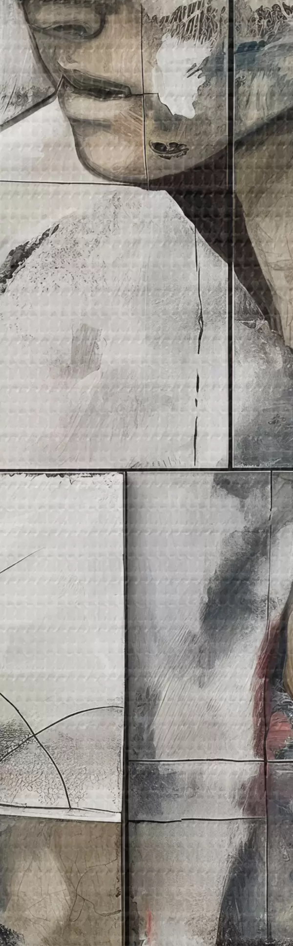 Om het doek op te spannen op spielatten zonder de afbeelding te beschadigen, gebruiken we gespiegeld beeld.
