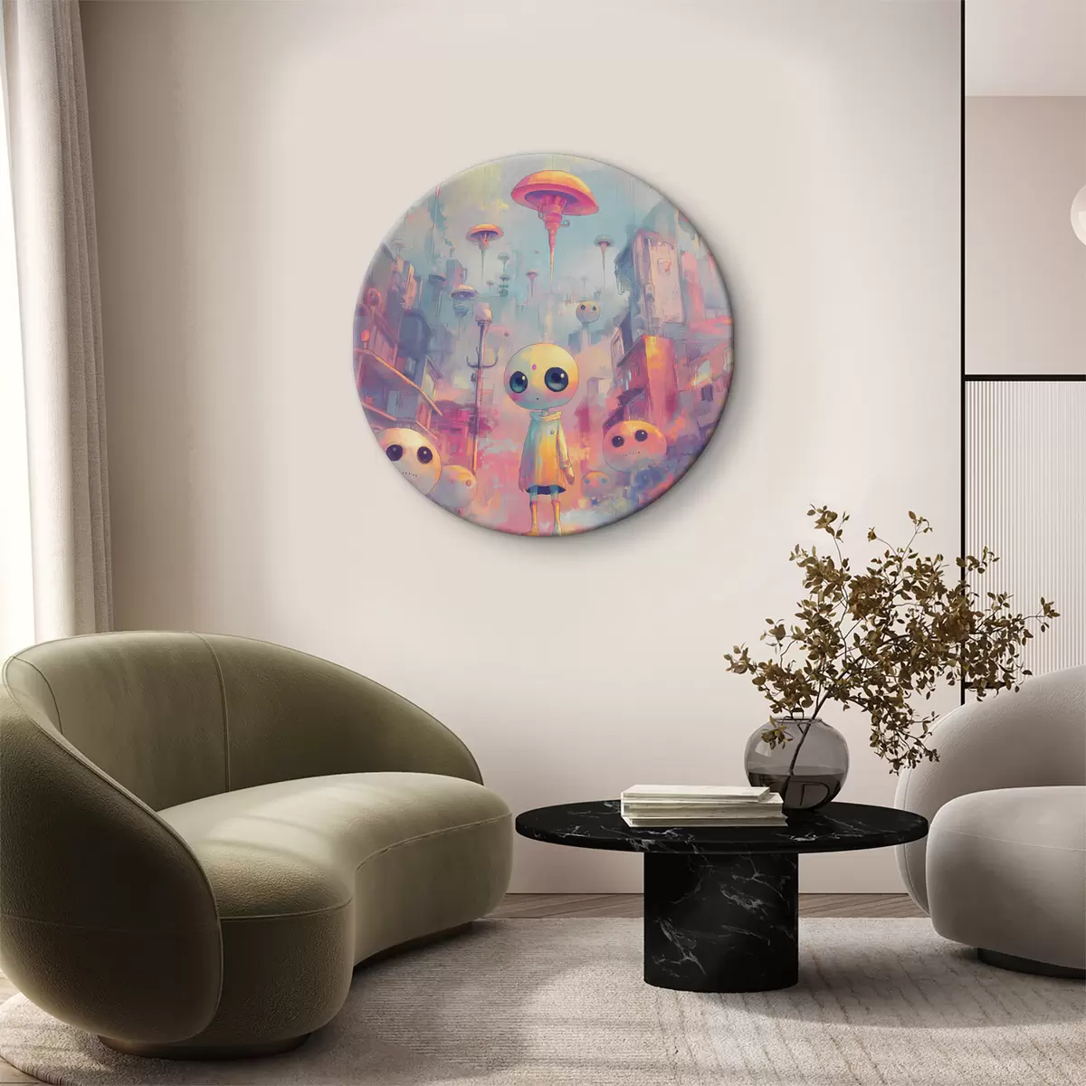 Ronde schilderijen De mystieke stad en haar bewoners r40276
