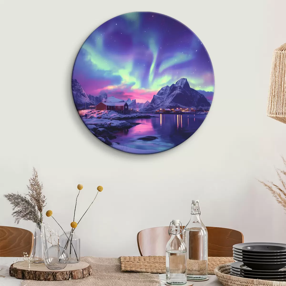 Ronde schilderijen Noorderlicht in Lofoten, Noorwegen, natuur, winter Nr r40298