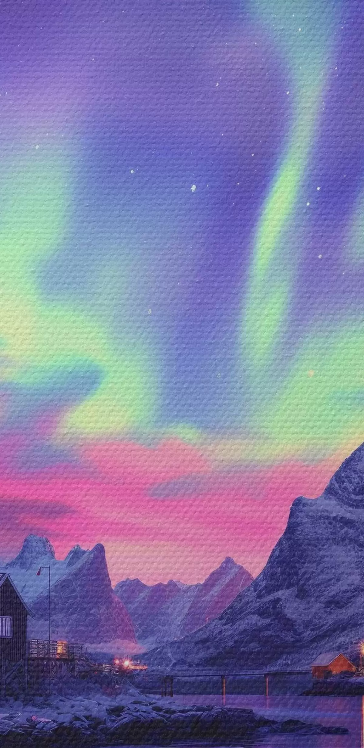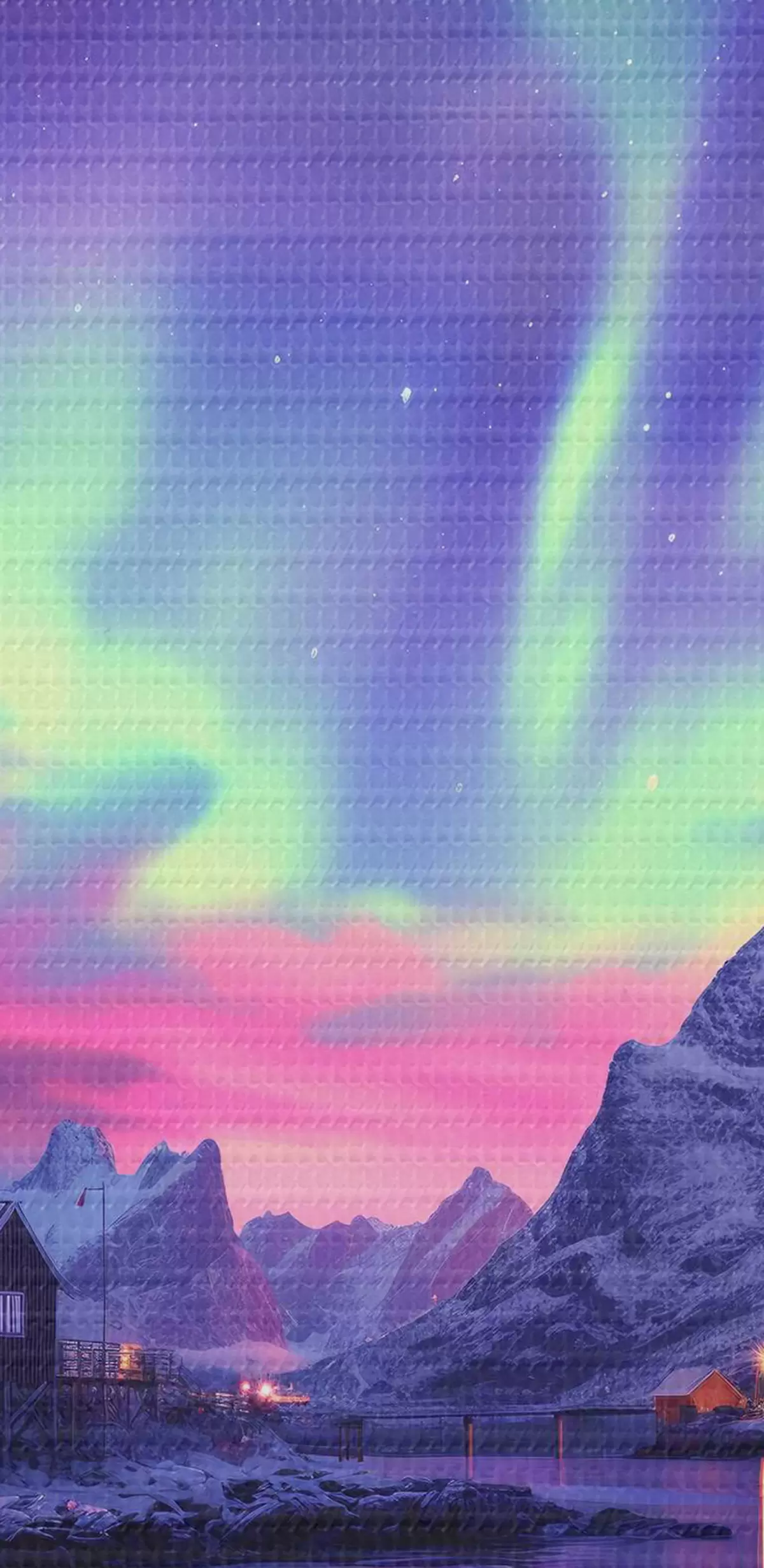 Ronde schilderijen Noorderlicht in Lofoten, Noorwegen, natuur, winter Nr r40298