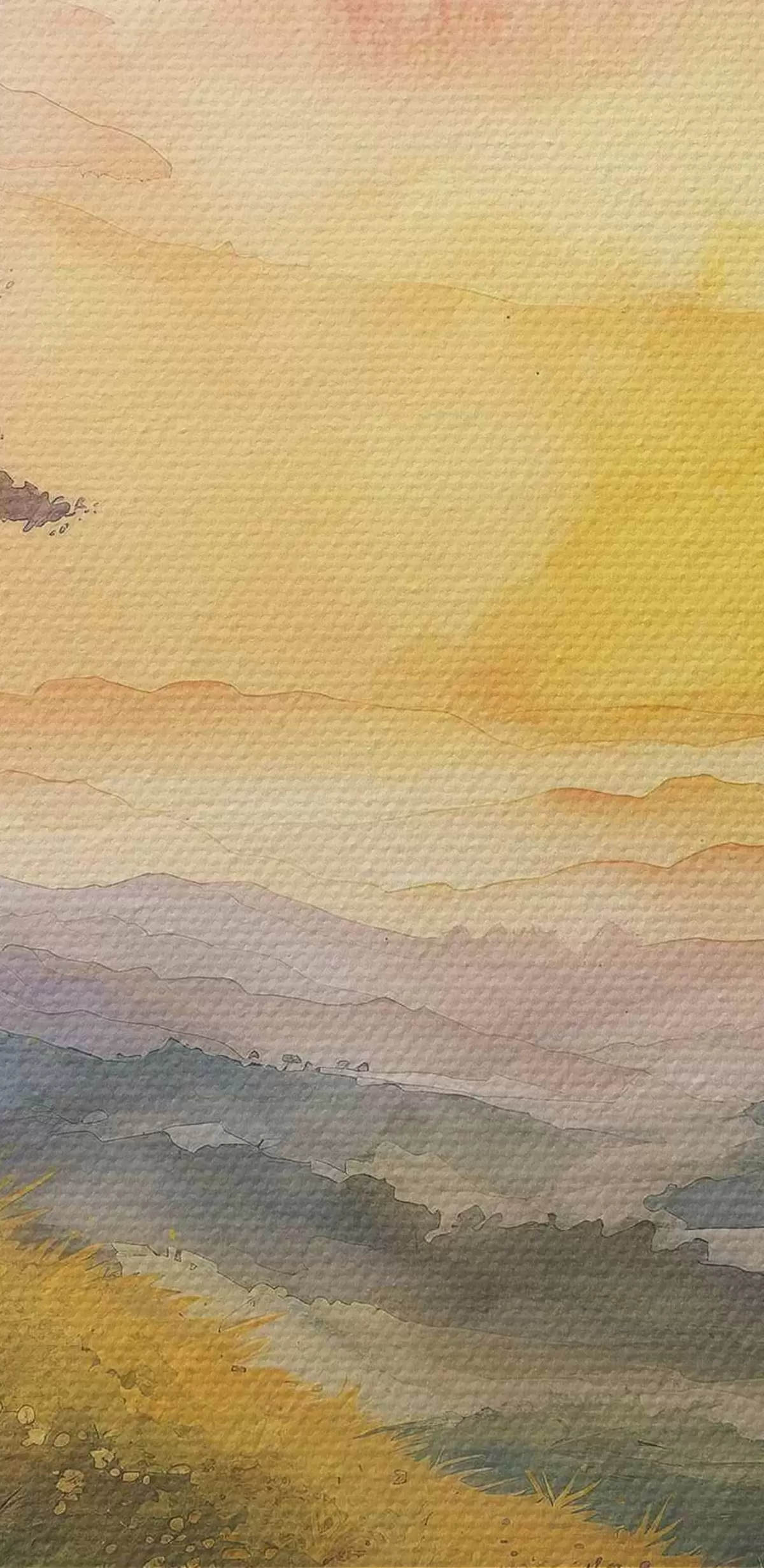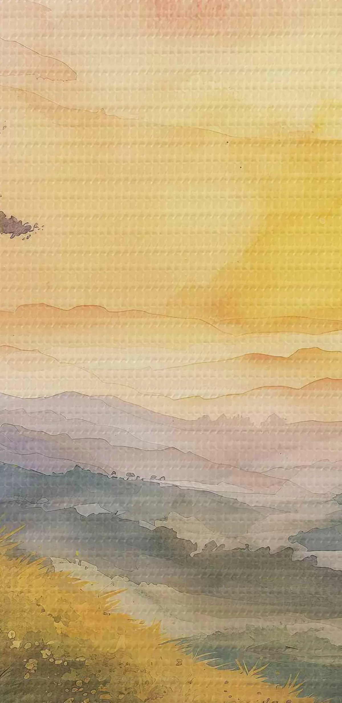 Ronde schilderijen Weide met heuvels en bomen, bloemen, aquarel Nr r40303