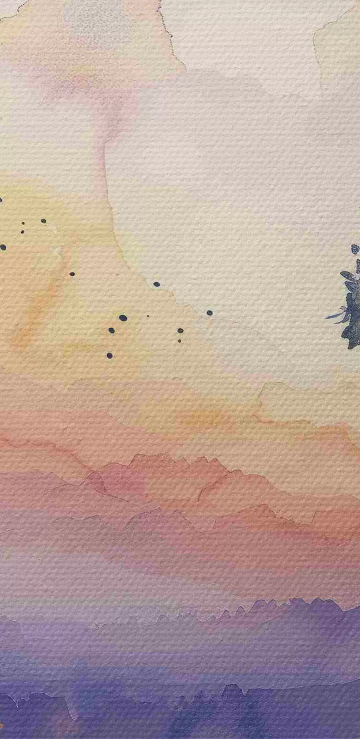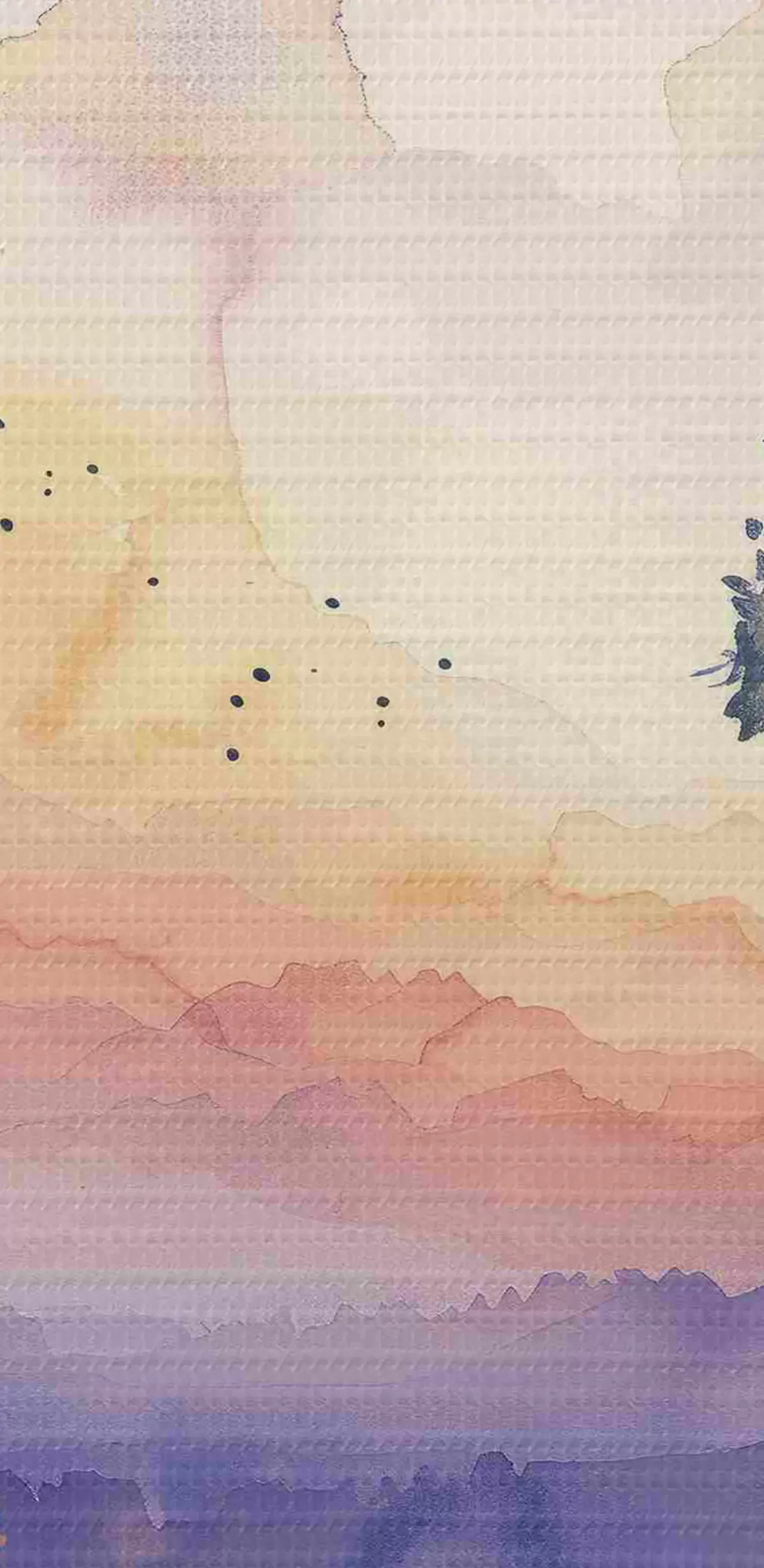 Ronde schilderijen Aquarel bos, zonsondergang, boomtakken, paars en oranje r40304