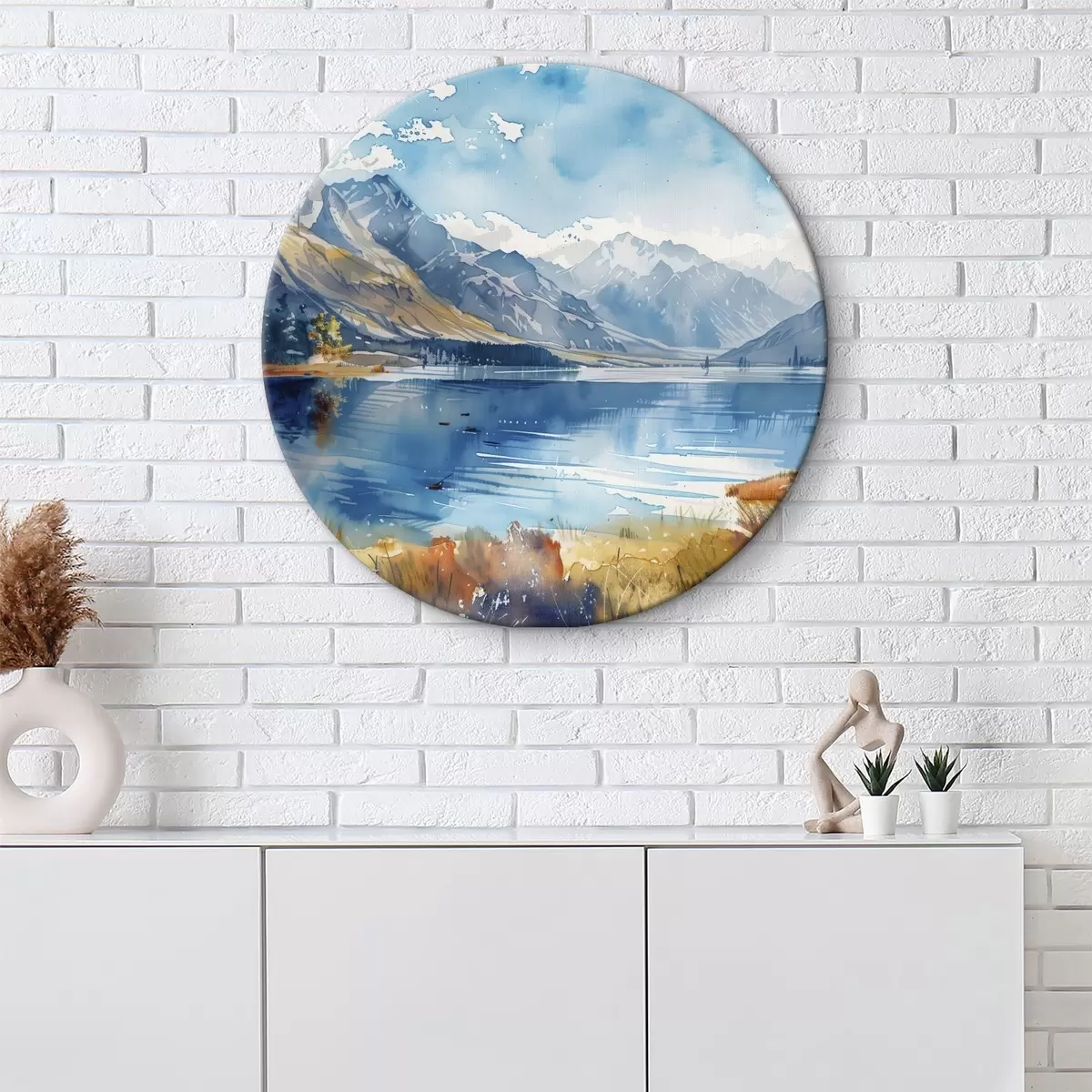 Ronde schilderijen Aquarel berglandschap, herfstkleuren Nr r40308