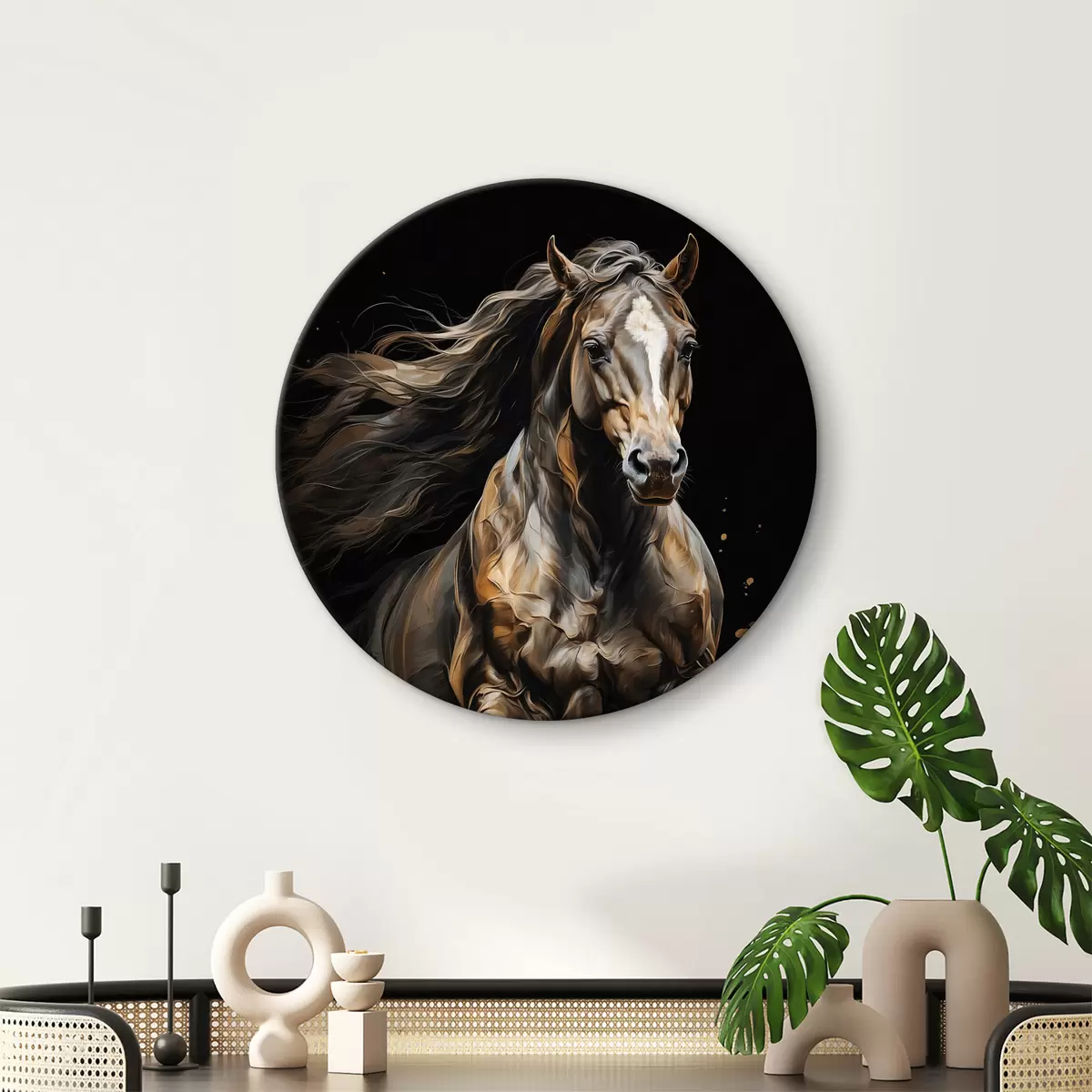 Ronde schilderijen Paard op zwarte achtergrond r40325